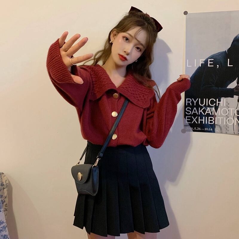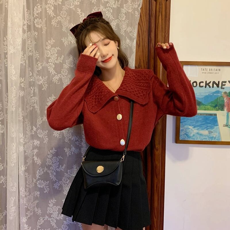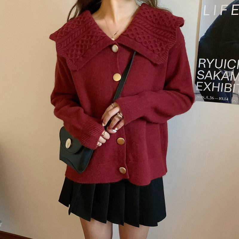 ビックカラーカーディガン レディース カーディガン ビックカラー 長袖 ケーブル編み ゴールドボタン フロントボタン ゆったり 楽ちん ゆる 体形カバー オーバーサイズ フェミニン シック クラシカル 可愛い 学生 通学 休日 お出かけ 女子会 女子 女性 お洒落 おしゃれ オシャレ ハイセンス トレンドアイテム 10代 20代 秋 冬 S M L XL ホワイト レッド 韓国 韓国ファッション オルチャン 韓国系 お取り寄せ 送料無料