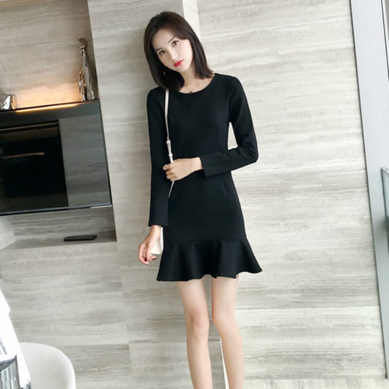 ミニワンピース レディース ワンピースドレス ミニ ミニ丈 ショート ショート丈 長袖 フレア マーメイドスカート マーメイドライン ラウンドネック タイト 細身 無地 シック クラシカル 結婚式 二次会 パーティー 演奏会 フォーマル きれいめ エレガント オフィス 通勤 OL ビジネスシーン 日常 デイリー 着回し 20代 30代 40代 春 秋 冬 ブラック レッド 黒 赤 3XL 大きいサイズ 韓国 韓国ファッション オルチャン お取り寄せ 送料無料