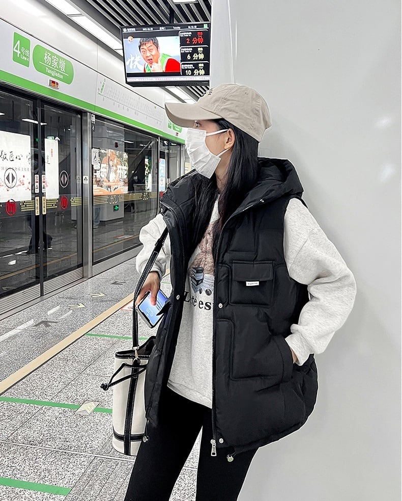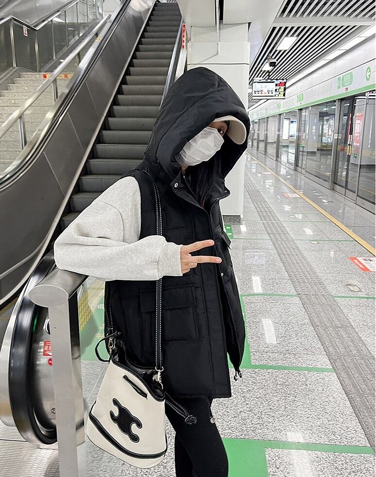 ダウンベスト レディース アウター ダウン ベスト フード付き フーディ ポケット アシメ アシメデザイン アシンメトリー アシンメトリーデザイン 個性的 通学 通勤 休日 日常 普段着 お洒落 おしゃれ オシャレ ハイセンス トレンドアイテム 10代 20代 30代 40代 春 秋 冬 ブルー ホワイト グリーン ブラック 青 黒 白 緑 韓国 韓国ファッション オルチャン お取り寄せ 送料無料