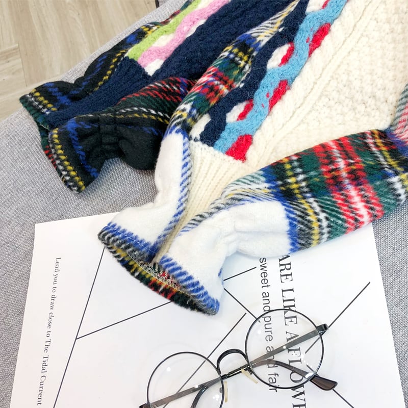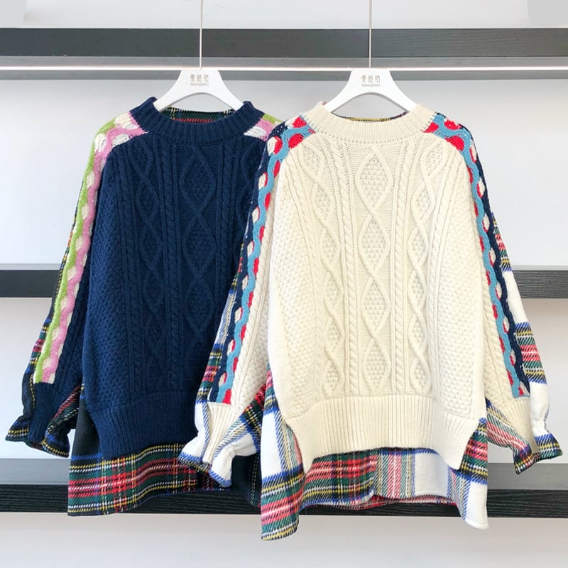 アシンメトリーセーター レディース 長袖 セーター アシンメトリー アシメデザイン デザイン ファッション コーデ コーディネート チェック チェック柄 ラウンドネック 異素材MIX 異素材ミックス ケーブル編み オーバーシルエット オーバーサイズ 体形カバー ゆる 楽ちん カジュアル シンプル おしゃれ オシャレ ハイセンス トレンドアイテム 秋 冬 デート 日常 お出かけ 普段着 普段使い ホワイト ネイビー 新作 韓国 韓国ファッション オルチャン お取り寄せ 送料無料