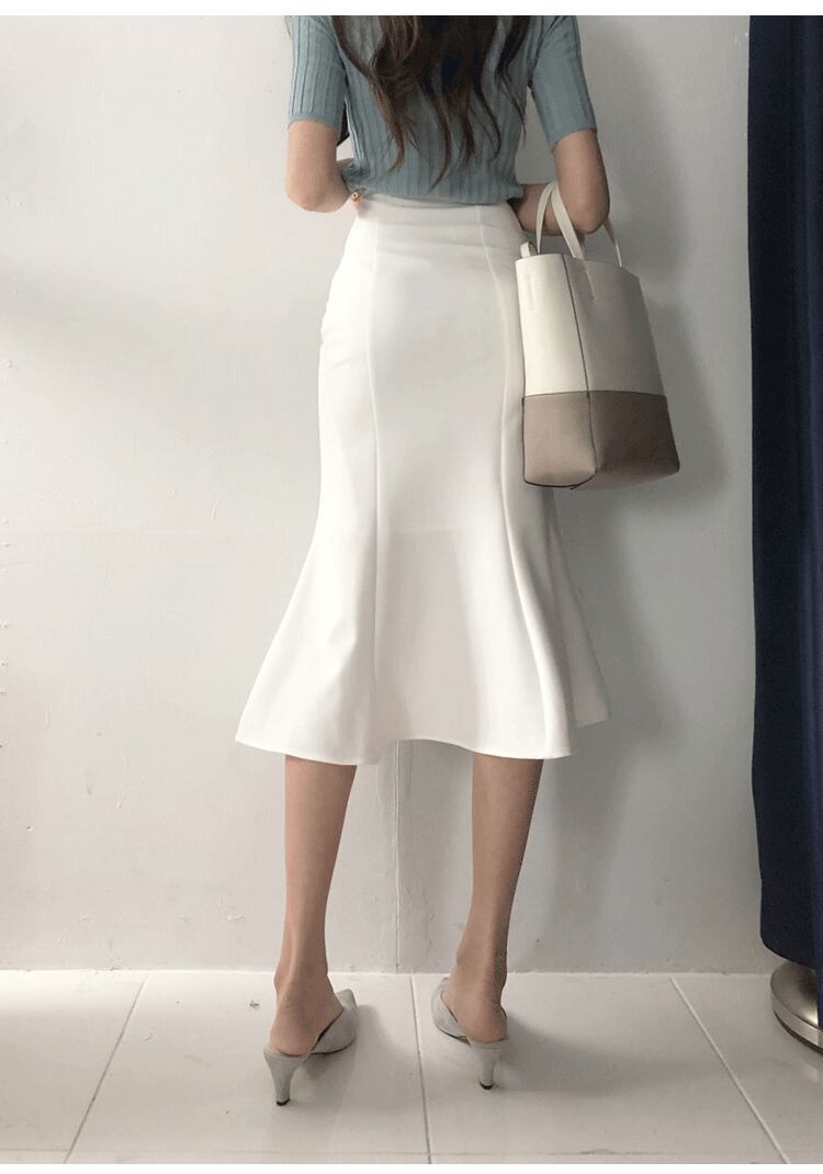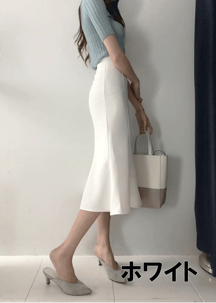 マーメイドスカート レディース ミドル丈 フレアスカート スカート ホワイト ブラック 白 黒 切り替えデザイン オフィス ビジネスシーン OL 日常 デイリー 普段着 普段使い エレガント きれいめ 上品 大人 コーディネート コーデ 新作 マーメイドライン ハイウエスト 脚長 脚長効果 春 夏 秋 冬 オールシーズン 新作 20代 30代 40代 韓国 韓国ファッション オルチャン お取り寄せ 送料無料