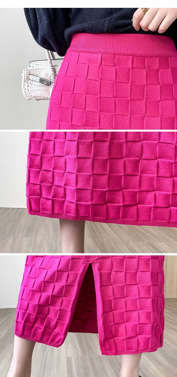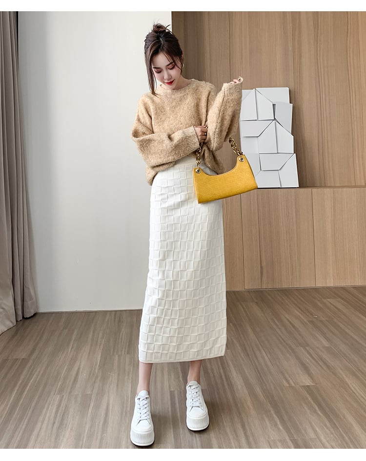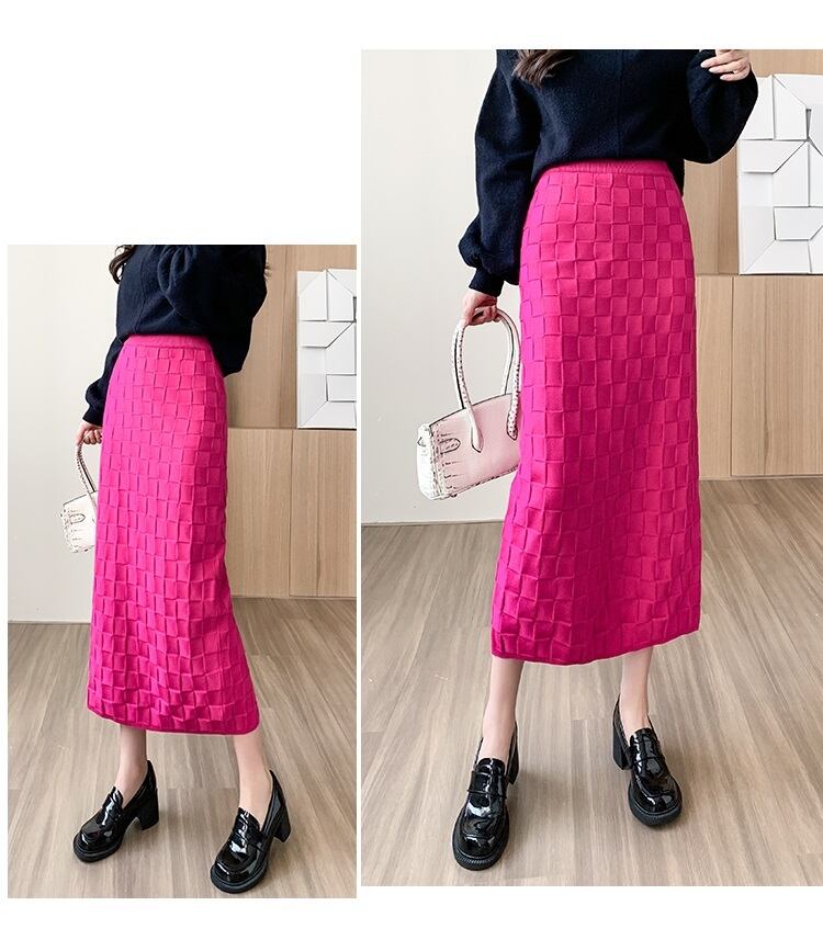 ニットスカート スカート レディース ロング スカー トニット ハイウエスト 脚長 脚長効果 ウエストゴム 仕事 仕事用 日常使い 普段着 普段使い 10代 20代 30代 40代 白 赤 黒 大人 コーデ コーディネート 韓国 ファッション オルチャン お取り寄せ 送料無料 hll-0039