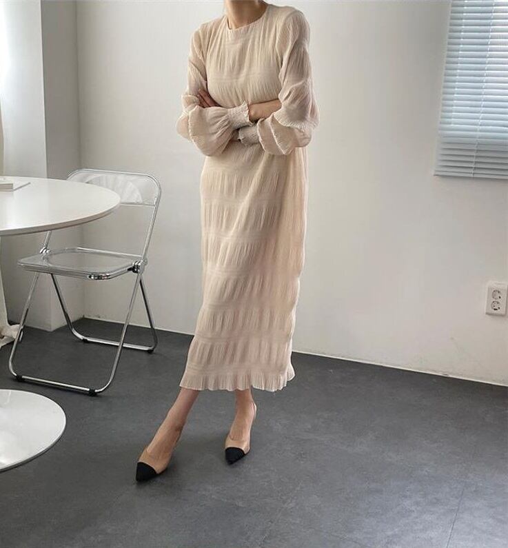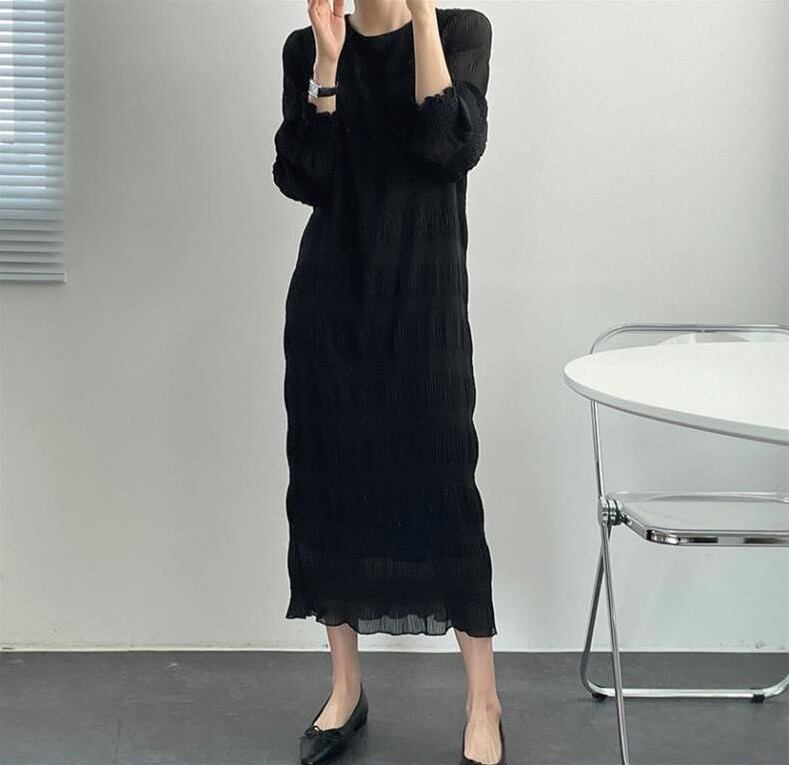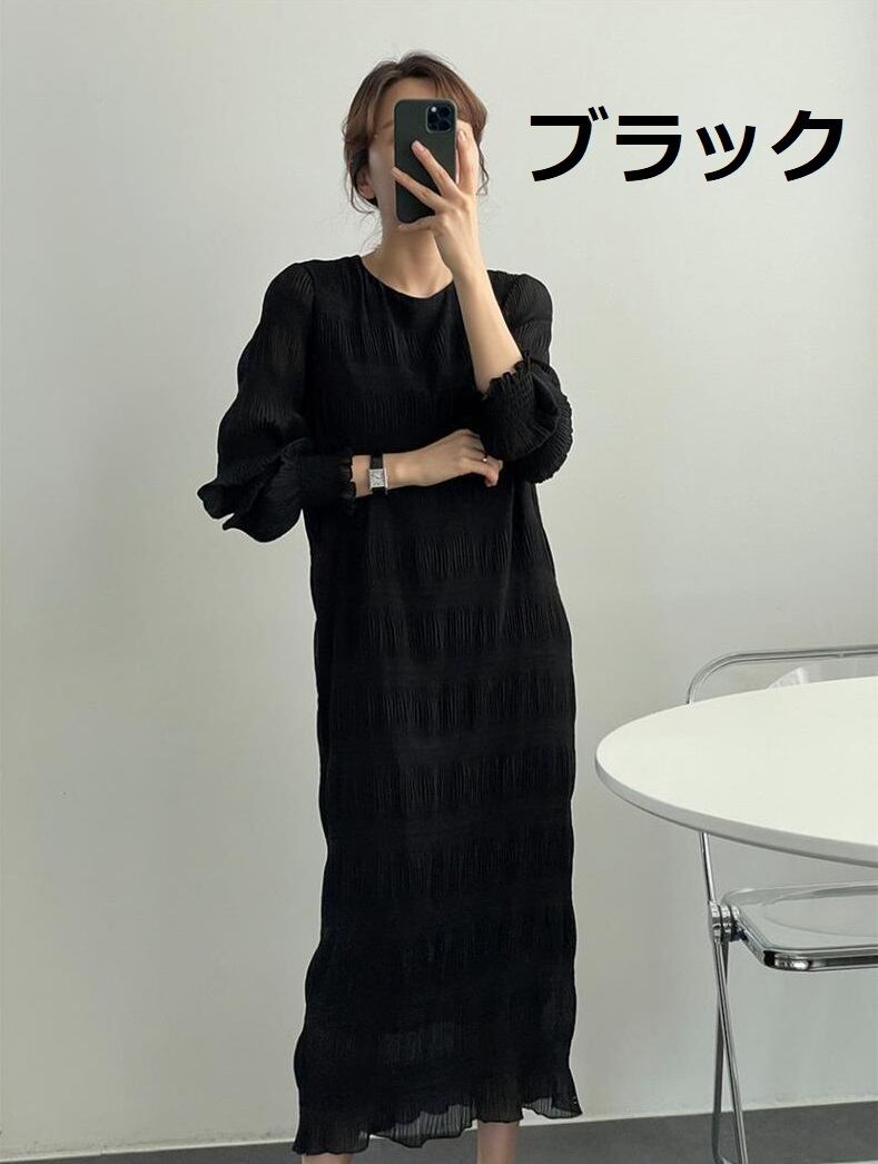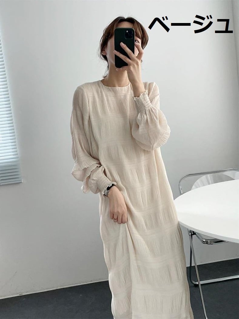 ロングワンピース レディース ロング ワンピース ワンピ 女性 きれいめ 長袖 ラウンドネック ゆる 体形カバー 日常使い 普段着 普段使い 上品 デート お出かけ 黒 ベージュ 20代 30代 大人 コーデ コーディネート 韓国 ファッション オルチャン お取り寄せ 送料無料 hll-0136