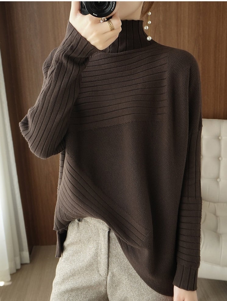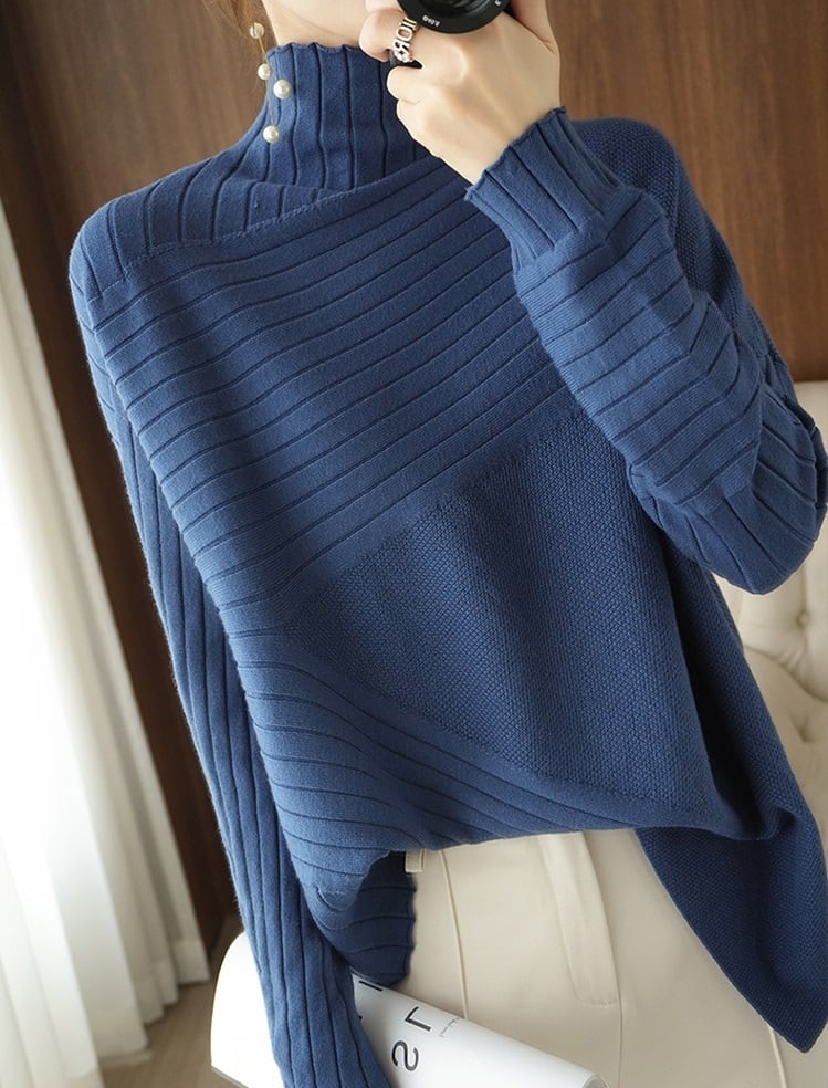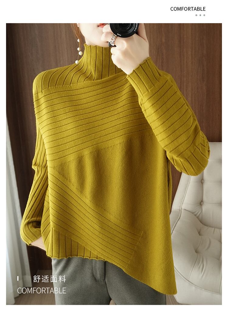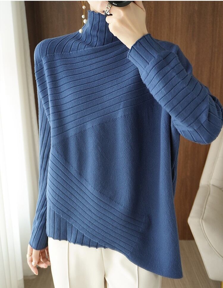 ニットソー レディース トップス ニット カットソー 長袖 ハイネック アシンメトリー デザイン アシメ きれいめ 上品 仕事 仕事用 仕事着 日常使い 普段着 普段使い 大人 コーデ コーディネート 韓国 ファッション オルチャン お取り寄せ 送料無料 hll-0151