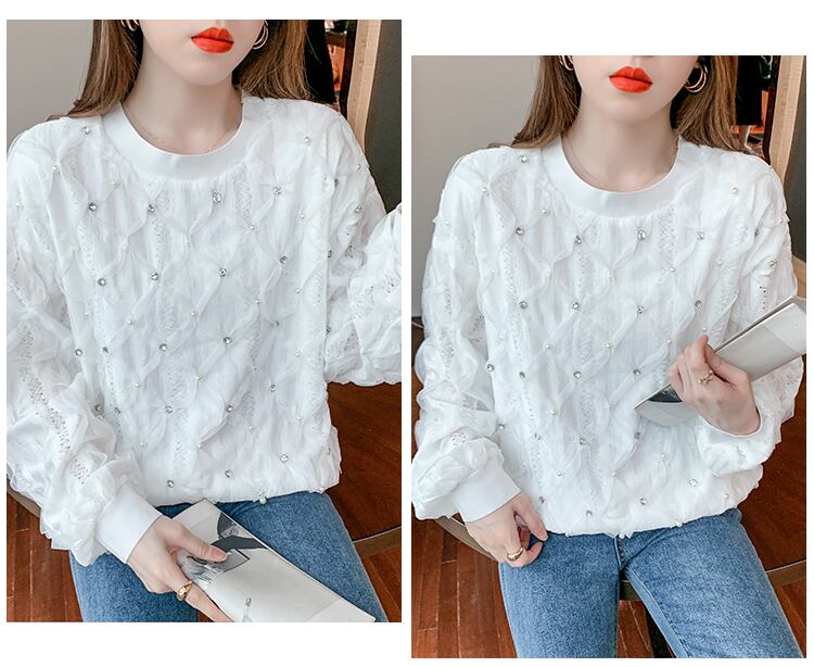 パールプルオーバー レディース 長袖 ラウンドネック プルオーバー レギュラー丈 フェミニン 可愛い お洒落 おしゃれ オシャレ ハイセンス トレンドアイテム ホワイト ベージュ 大人 コーディネート コーデ 学生 通学 通勤 オフィス ビジネスシーン 休日 OL デート 日常 デイリー 普段着 普段使い ママ友 春 秋 冬 新作 韓国 ファッション オルチャン お取り寄せ 送料無料
