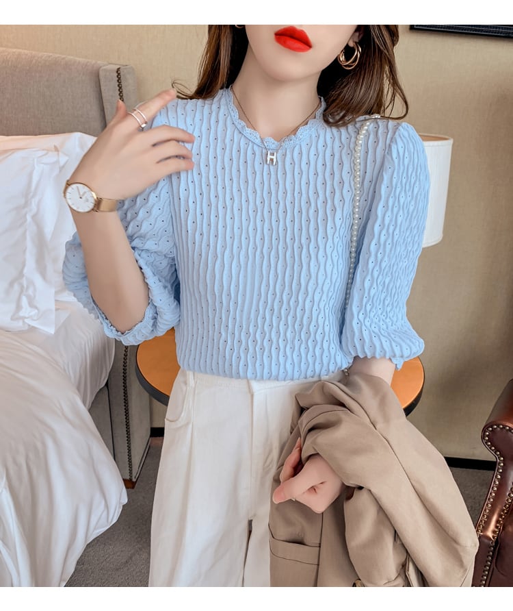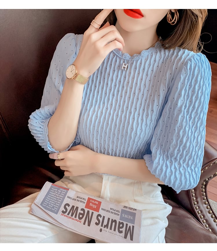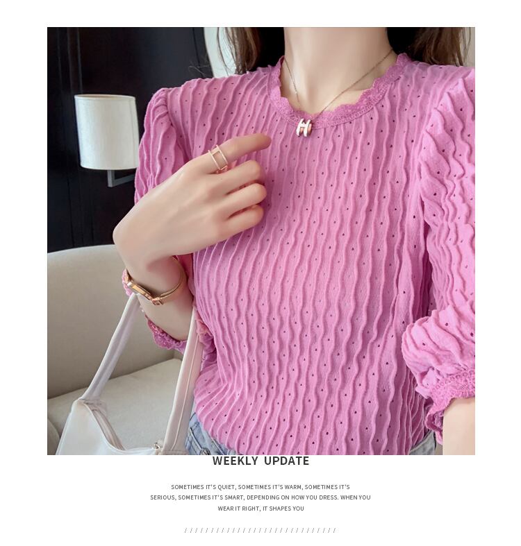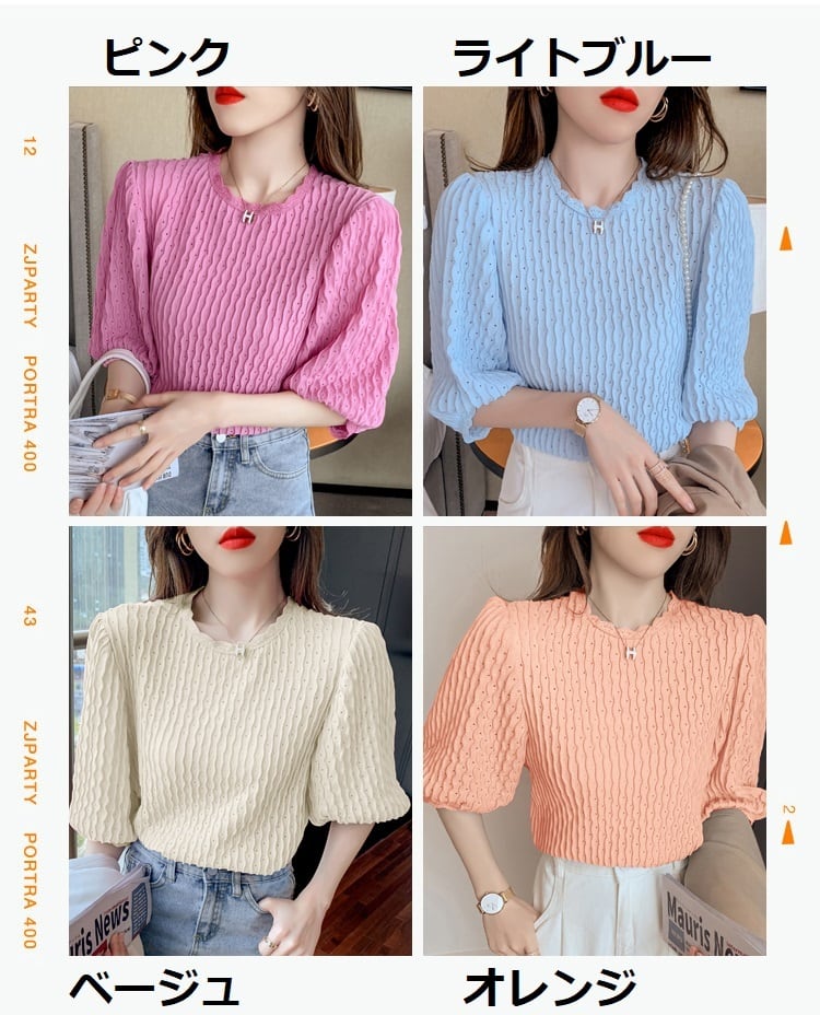 Tシャツ レディース トップス 半袖 パフ パフスリーブ パフ袖 ランドネック レギュラー丈 日常使い 普段着 普段使い 仕事 仕事用 仕事着 可愛い かわいい おしゃれ フェミニン ガーリー 20代 30代 春 夏 大人コーデ コーディネート 韓国 ファッション オルチャン お取り寄せ 送料無料 hll-0479