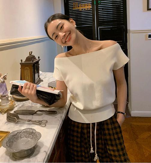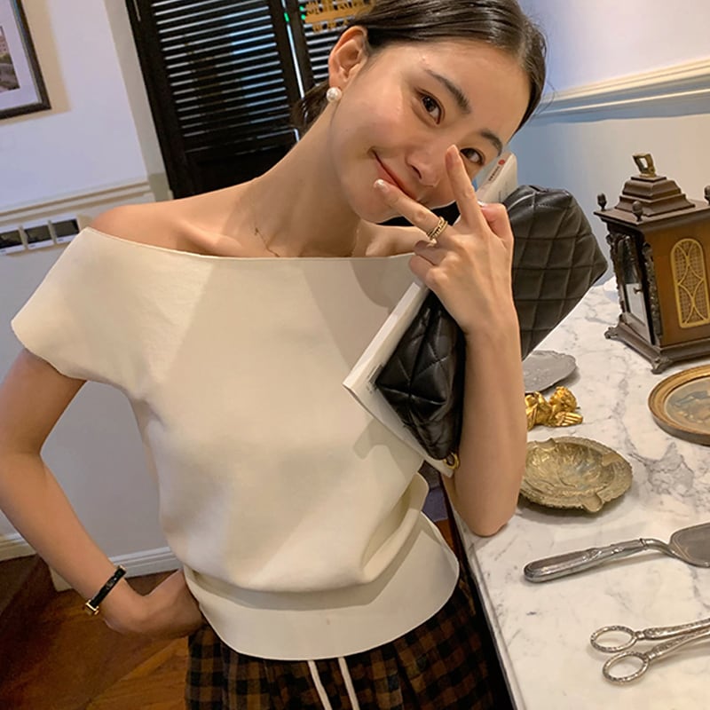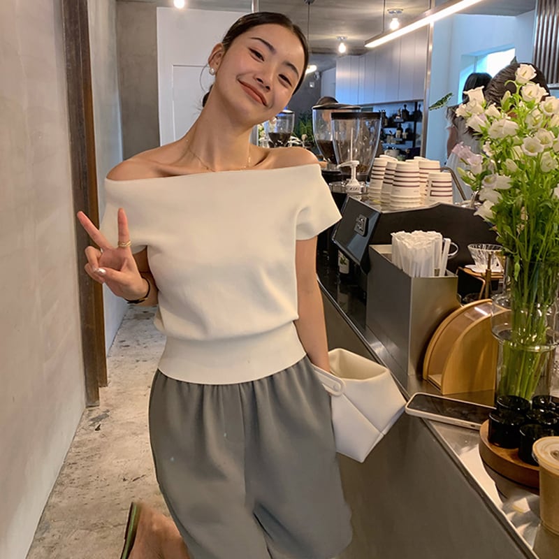 オフショルダーサマーニット トップス レディース ショート ショート丈 サマーニット ニット オフショルダー 半袖 2way 無地 カジュアル シンプル 日常使い 普段着 普段使い 仕事 仕事用 仕事着 20代 30代 40代 春 夏 大人 コーデ コーディネート 韓国 ファッション オルチャン お取り寄せ 送料無料 hll-0480