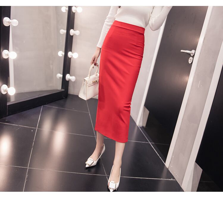 タイトスカート レディース スカート タイト ミモレ丈 無地 きれいめ 上品 エレガント 赤 黒 細身 日常 仕事 仕事用 仕事着 20代 30代 40代 春 夏 秋 冬 大人 コーデ コーディネート 韓国 ファッション オルチャン お取り寄せ 送料無料 hll-0483