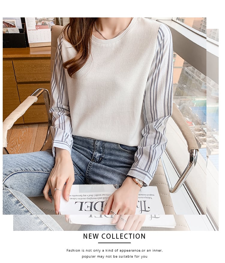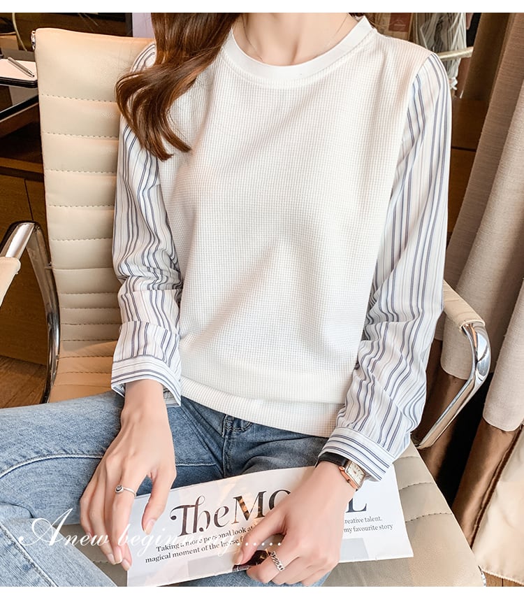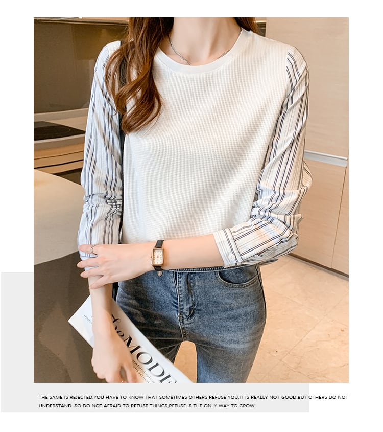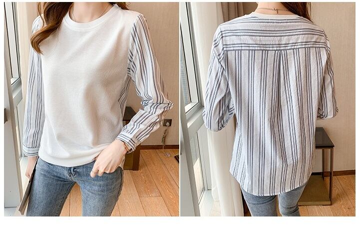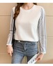 切り替えブラウス カットソー レディース トップス 長袖 ラウンドネック レギュラー丈 異素材 ミックス MIX アシンメトリー アシメ デザインカジュアル スタイル 白 かわいい 可愛い 日常 デート お出かけ 仕事 仕事用 仕事着 20代 30代 40代 春 秋 大人 コーデ コーディネート 韓国 ファッション オルチャン お取り寄せ 送料無料 hll-0491