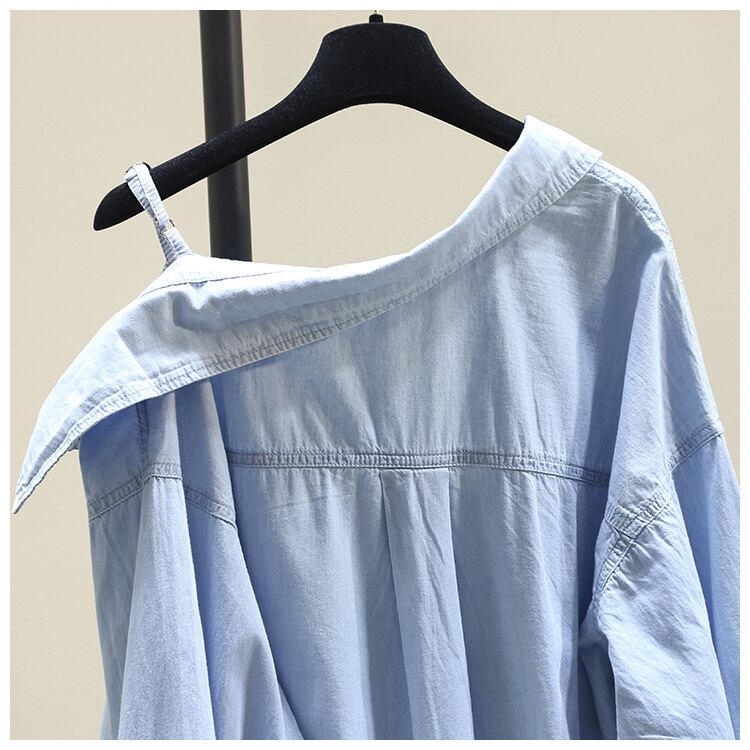 アシンメトリーシャツ レディース トップス シャツ アシンメトリー アシメ デザイン ワンショルダー 長袖 春 夏 10代 20代 かわいい 可愛い 日常 デート お出かけ 大人 コーデ コーディネート 韓国 ファッション オルチャン お取り寄せ 送料無料 hll-0497