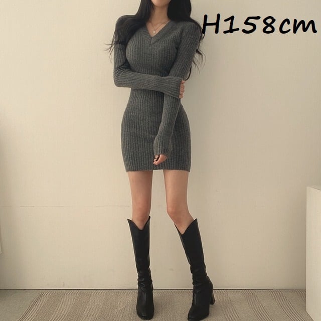 ミニワンピース レディース ワンピース ミニ ミニ丈 ワンピ ミニワンピ Vネック デコルテ 長袖 リブ 縦リブ タイト 細身 エレガント きれいめ オフィス ビジネスシーン OL 日常 デイリー 普段着 普段使い 大人 コーディネート コーデ 着回し 通勤 通学 学生 デート お出かけ 女子会 女子 秋 冬 セクシー 韓国 韓国ファッション オルチャン お取り寄せ 送料無料