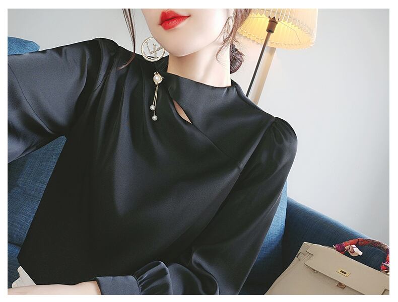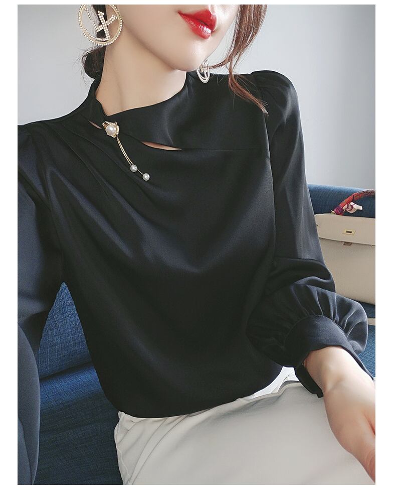 ブラウス 光沢ブラウス エレガント オフィス 大人 コーデ コーディネート 韓国 ファッション お取り寄せ 送料無料 hll-0054