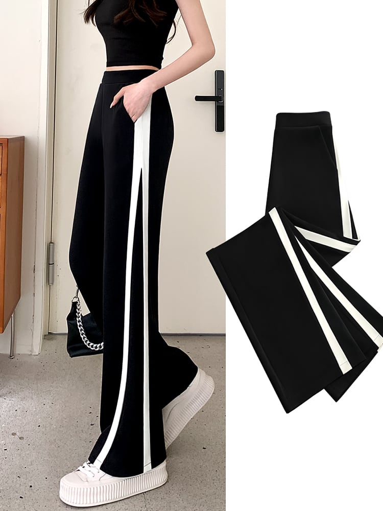 ワイドパンツ ズボン ロングパンツ パンツ ライン ブラック 黒 ウエストゴム 大人 コーデ コーディネート 韓国 ファッション お取り寄せ 送料無料 hll-0518