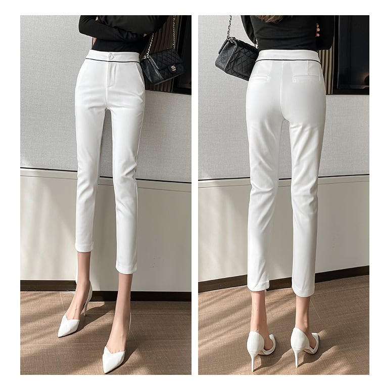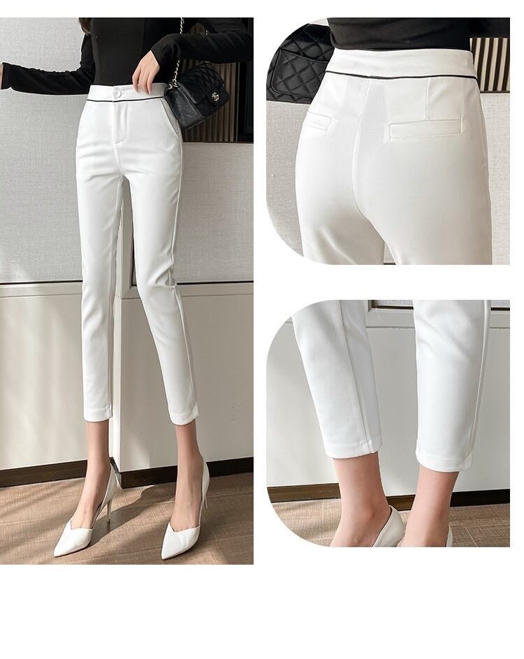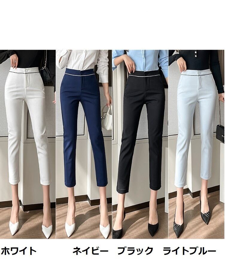 九分丈パンツ アンクルパンツ レディース パンツ ストレッチ ストレート スリム 細身 シルエット きれいめ 仕事着 20代 30代 40代 春 夏 白 黒 クロップド 無地 上品 大人 コーディネート コーデ 韓国 ファッション お取り寄せ 送料無料 hll-0523
