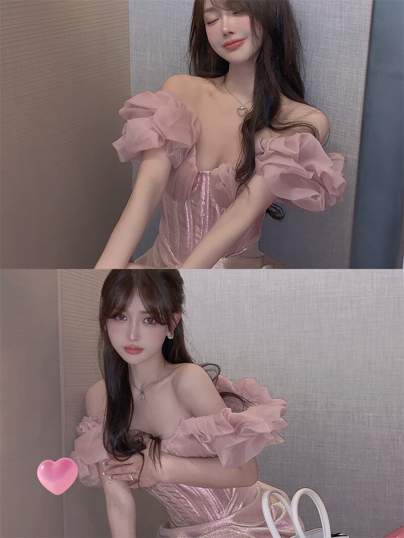 ミニドレス ワンピドレス ワンピース パフスリーブ ドレス ミニ セクシー パーティー 二次会 演奏会 結婚式 韓国 ファッション コーデ コーディネート hll-0524