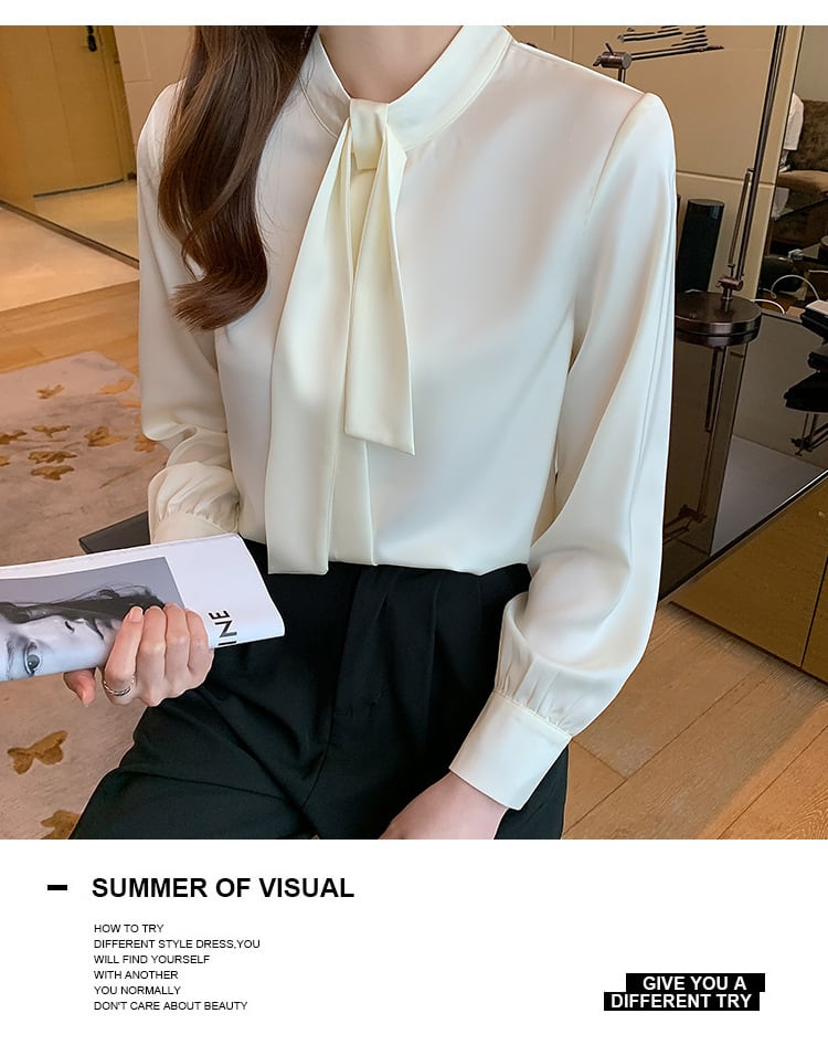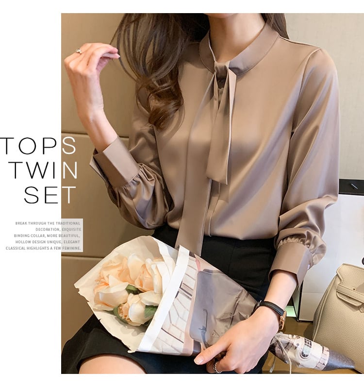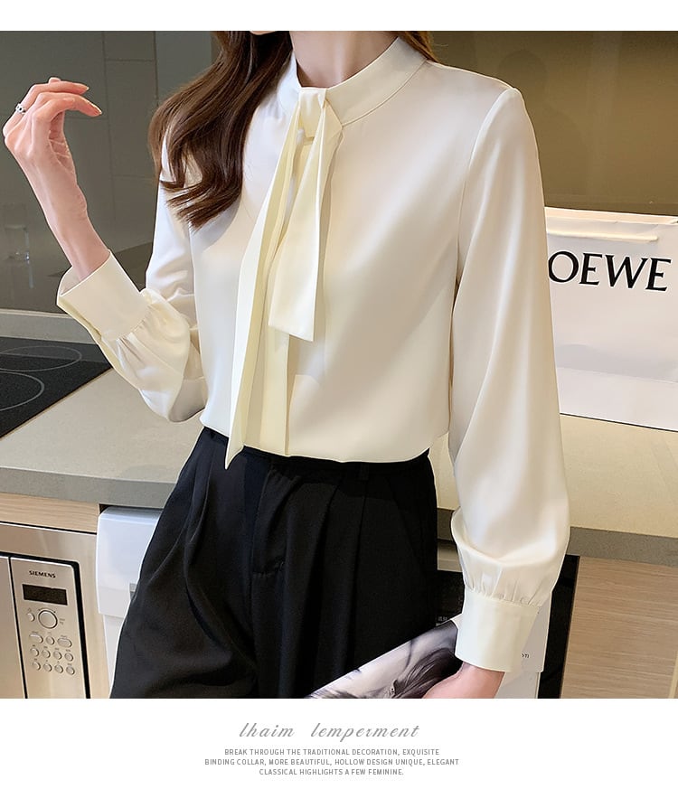 ブラウス 長袖 プルオーバー シャツ きれいめ 上品 仕事 オフィス ビジネスシーン 仕事用 スーツ 白 可愛い 大人 コーデ コーディネート 韓国 ファッション オルチャン お取り寄せ 送料無料 hll-1250