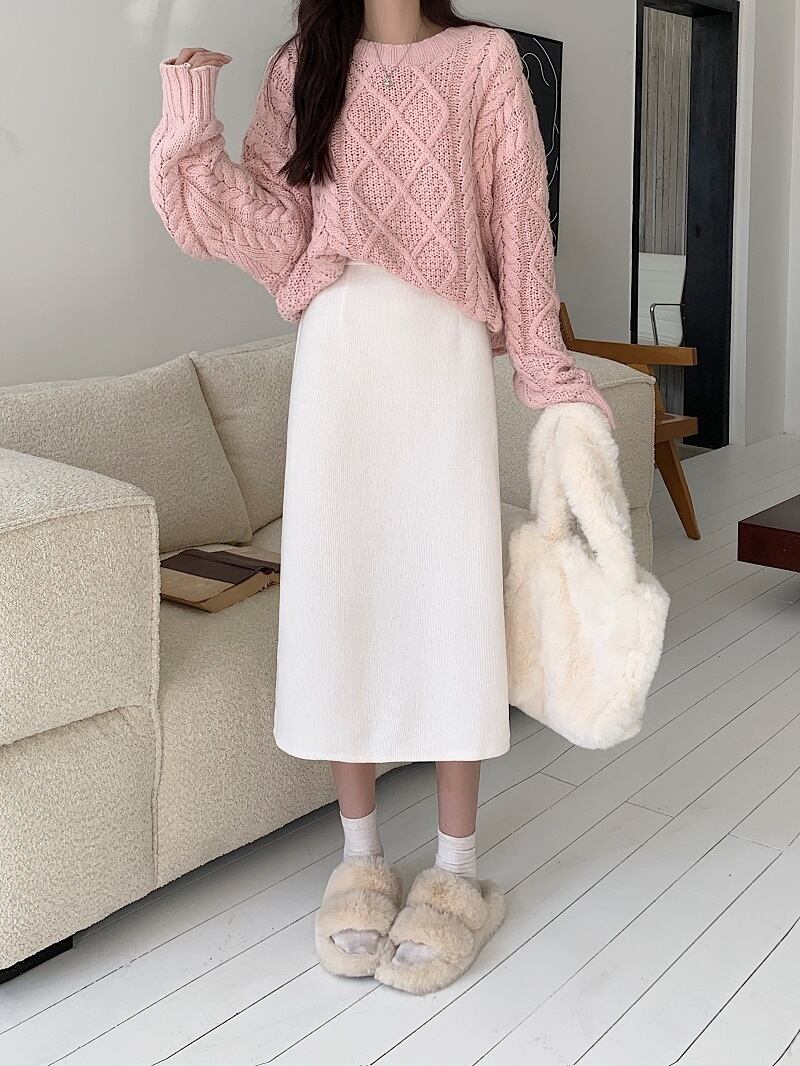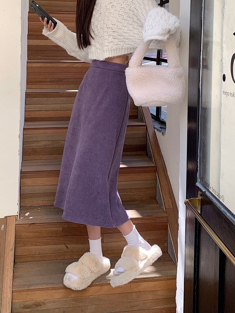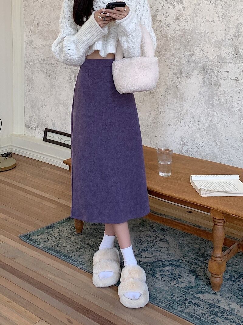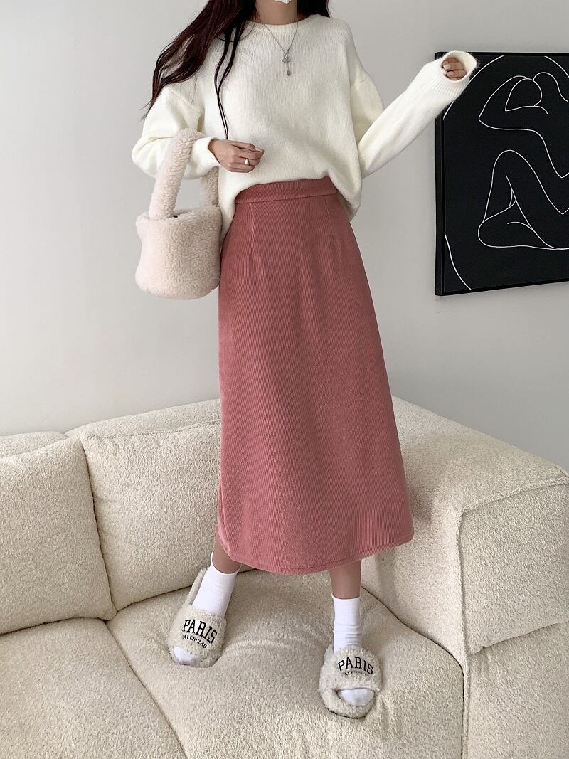 コーデュロイスカート ミドル丈 スカート ハイウエスト Aライン 裏起毛 暖かい 秋 冬 20代 30代 40代 きれいめ おしゃれ かわいい 日常使い普段着 普段使い 大人 コーデ コーディネート 韓国 ファッション オルチャン お取り寄せ 送料無料 hll-1286
