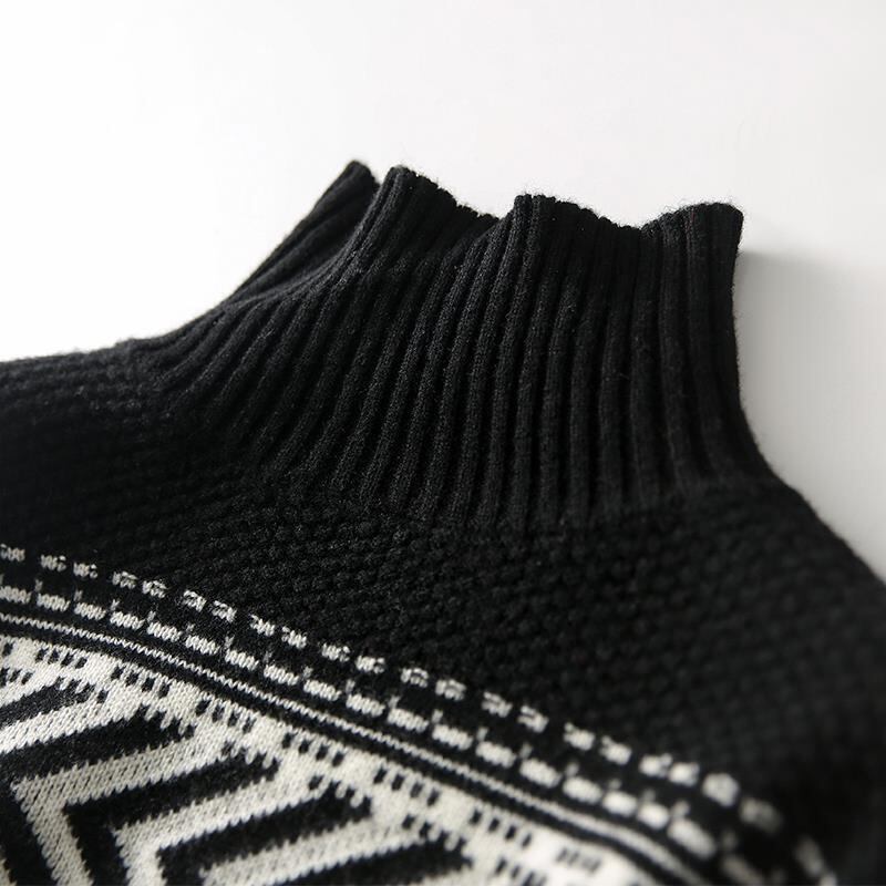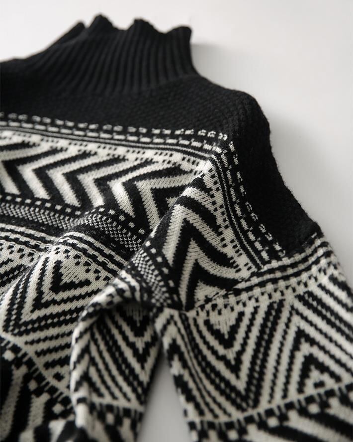 北欧風セーター セーター ニット 長袖 レギュラー丈 ハイネック 柄 きれいめ お出かけ デート 仕事 仕事用 日常使い 普段着 普段使い 大人 コーデ コーディネート 秋 冬 40代 韓国 ファッション オルチャン お取り寄せ 送料無料 hll-1259