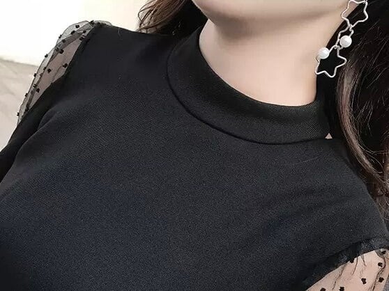 ドット柄の透け感のあるシースルースリーブがとってもお洒落でエレガント◎