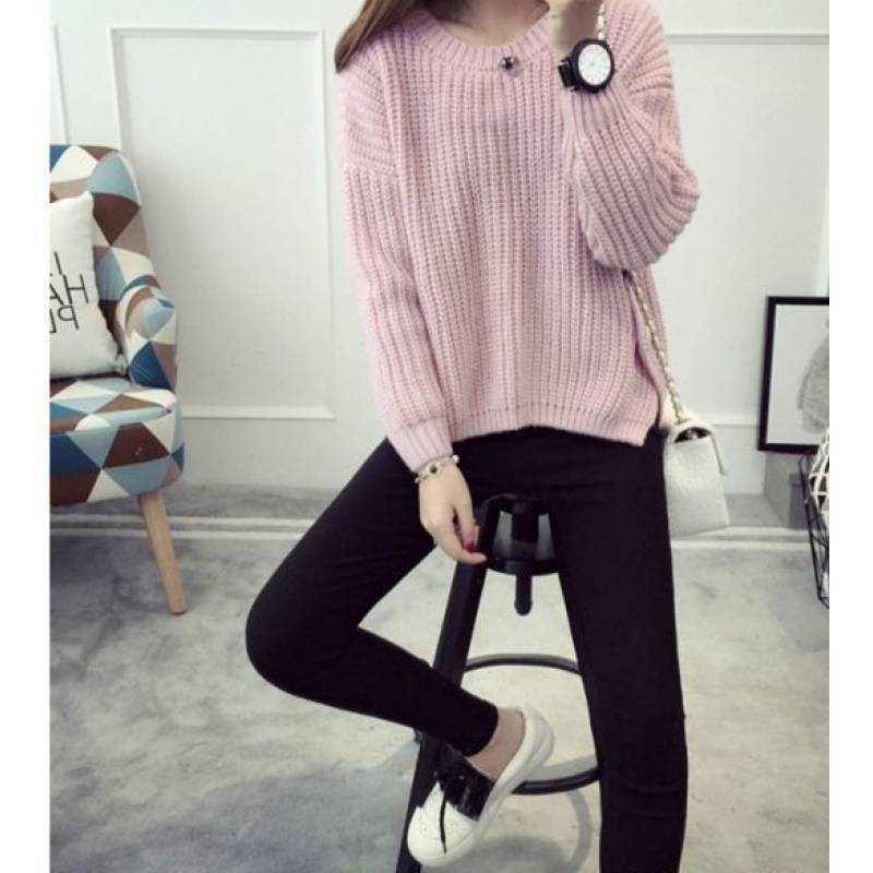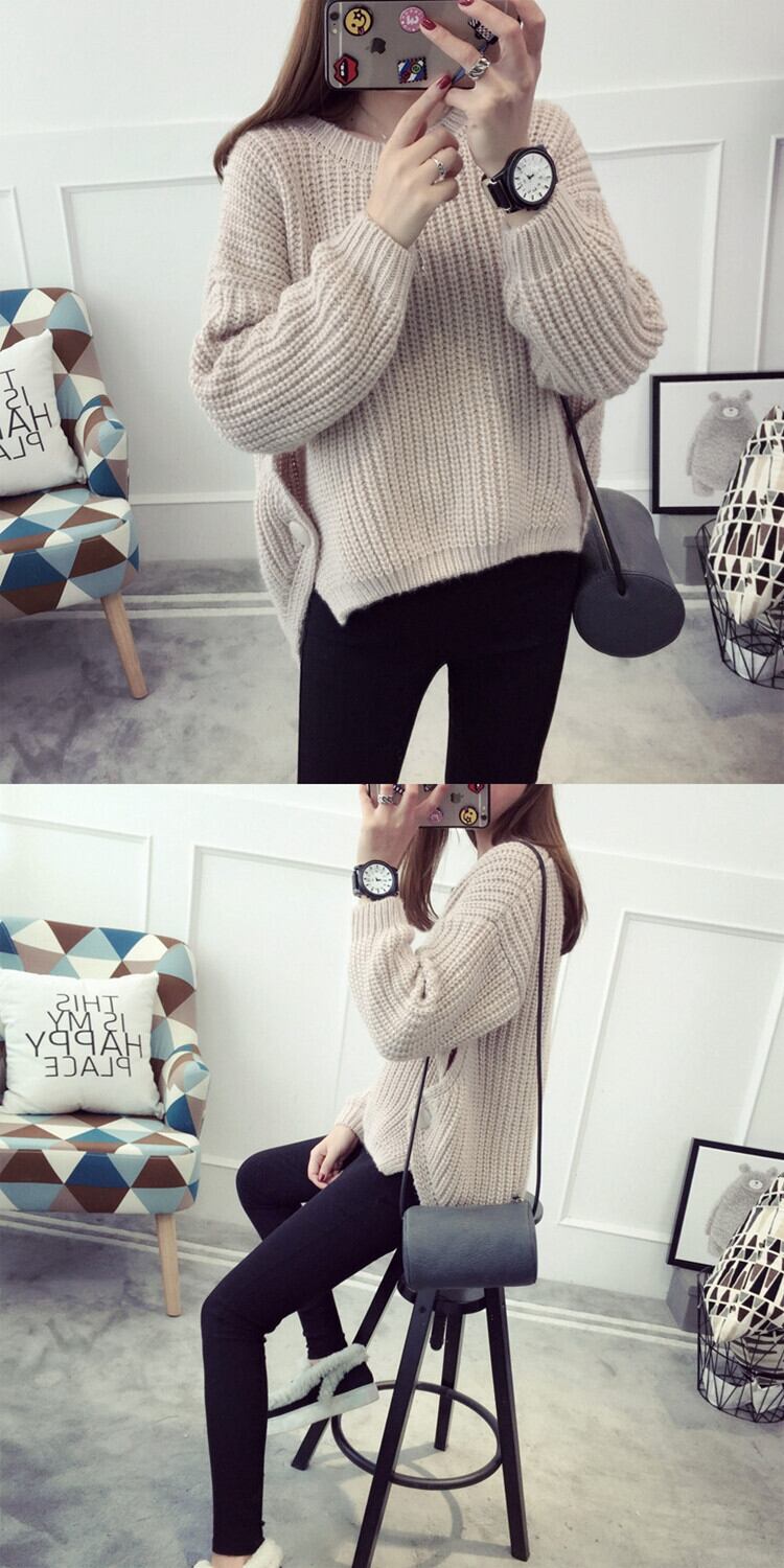 オーバーサイズセーター 長袖 ラウンドネック カジュアル シンプル 無地 きれいめ 上品 10代 20代 30代 40代 ピンク グレー モカ ベージュ 大人 コーデ コーディネート 韓国 ファッション オルチャン お取り寄せ 送料無料 hll-0542