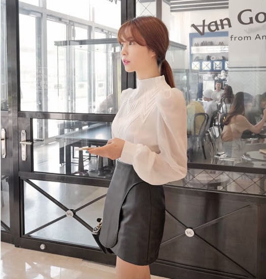 シャツ シフォンシャツ レディース トップス ブラウス プルオーバー 長袖 パフスリーブ スタンドカラー 無地 きれいめ 上品 清楚 お洒落 お呼ばれ パーティー お出かけ 秋 ホワイト 白 ブラック 黒 S M L XL 2XL 20代 30代 大人 コーデ コーディネート 韓国 ファッション オルチャン お取り寄せ 送料無料 hll-0071