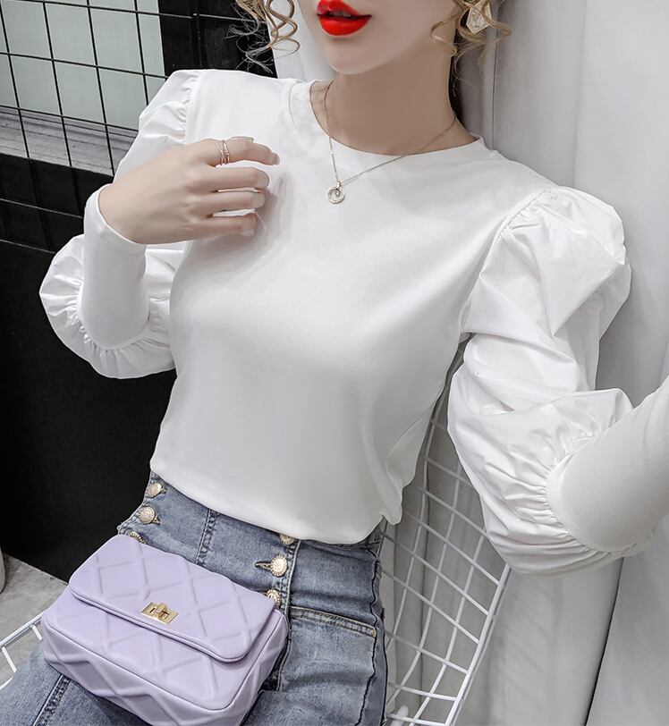 シャツ カットソー レディース トップス 長袖 パフスリーブ ラウンドネック プルオーバー スリム レトロ カジュアル 無地 きれいめ 上品 清楚 お洒落 普段使い 普段着 日常使い オフィス ビジネス お出かけ デート 女子会 秋 冬 ホワイト 白 ブラック 黒 S M L XL 20代 30代 大人 大人かっこいい コーデ コーディネート 韓国 ファッション オルチャン お取り寄せ 送料無料 hll-0078