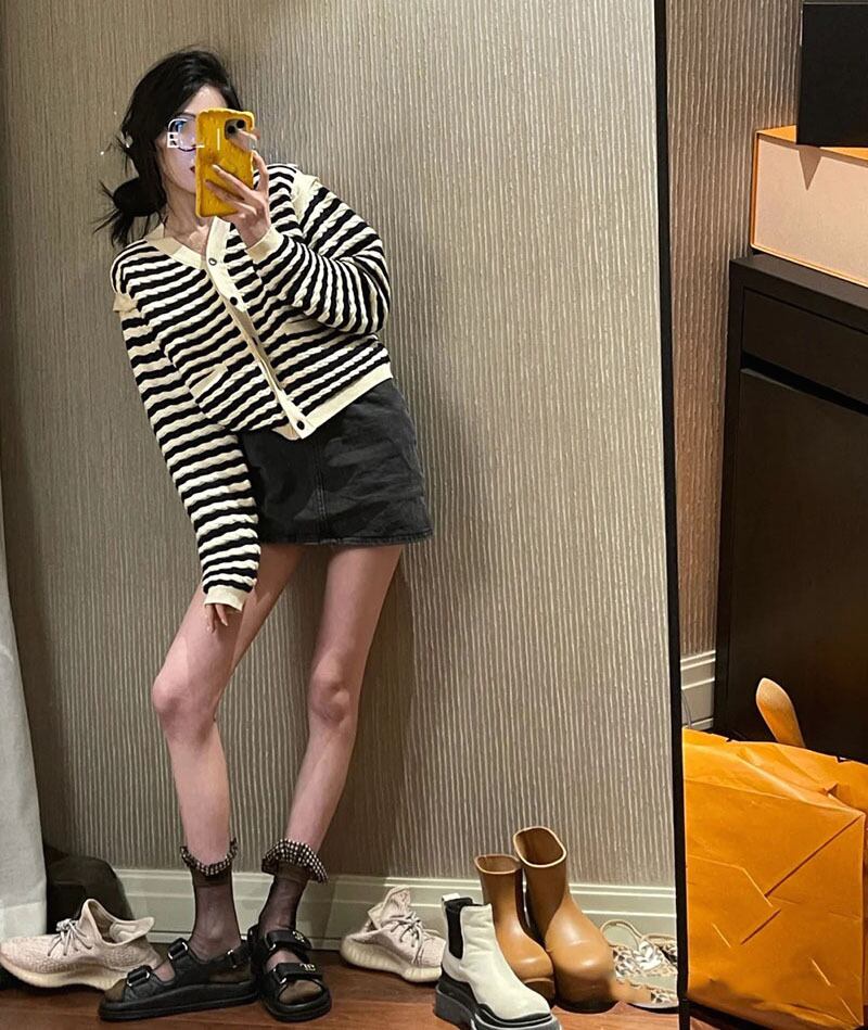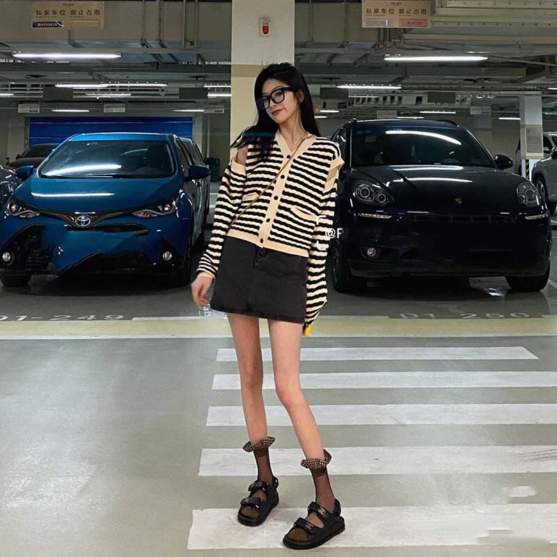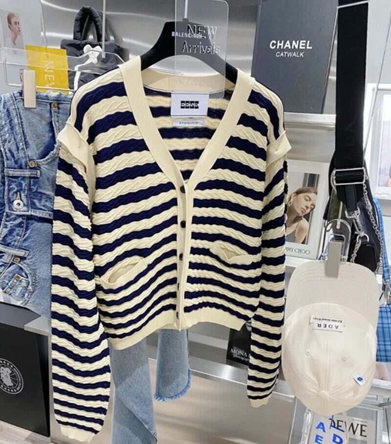 カーディガン レディース トップス ライトアウター ニット ニットカーディガン 長袖 ボタン 前開き Vネック ポケット ボーダー柄 カジュアル きれいめ お洒落 ルーズ 日常使い 普段着 普段使い デート お出かけ 学生 通学 OL 通勤 春 S M L 10代 20代 30代 大人 コーデ コーディネート 韓国 ファッション オルチャン お取り寄せ 送料無料 hll-0091