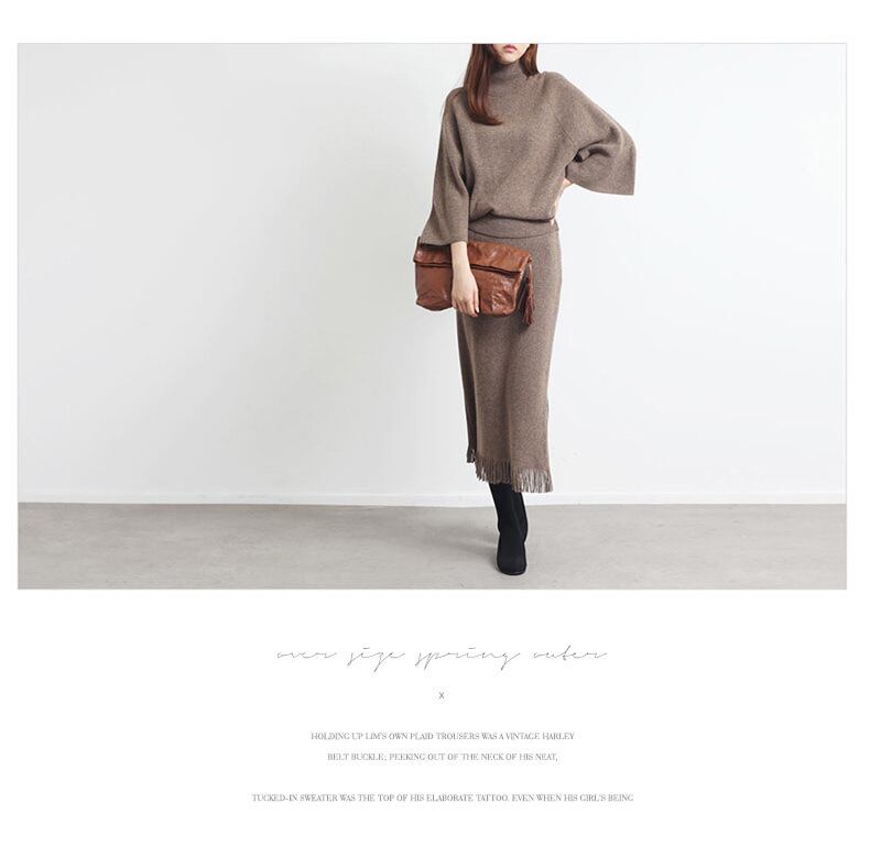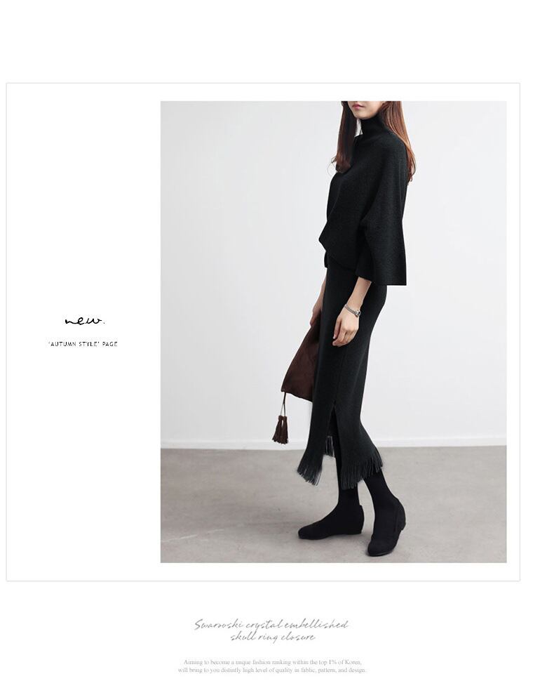 セットアップ レディース トップス ニット ボトムス スカート スリット タートルネック 七分袖 フリンジ きれいめ 上品 仕事 仕事用 仕事着 20代 30代 40代 50代 無地 シンプル 秋 冬 日常使い 普段着 普段使い 大人 コーデ コーディネート 韓国 ファッション オルチャン お取り寄せ 送料無料 hll-1289