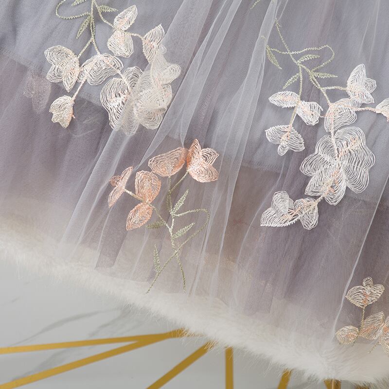 お花の刺繍が可愛らしいロング丈のチュールスカートです。