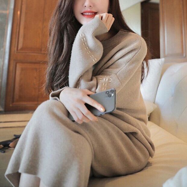 セットアップ レディース セーター スカート ニット ニットセーター ニットスカート スカートスーツ 長袖 ラウンドネック 2点セット カジュアル 大人女子 大人かっこいい お洒落 エレガント 秋 冬 ベージュ ブラック 黒 パープル 紫 20代 30代 デート お出かけ OL 通勤 オフィス ビジネス お呼ばれ 大人 コーデ コーディネート 韓国 ファッション オルチャン お取り寄せ 送料無料 hll-0093