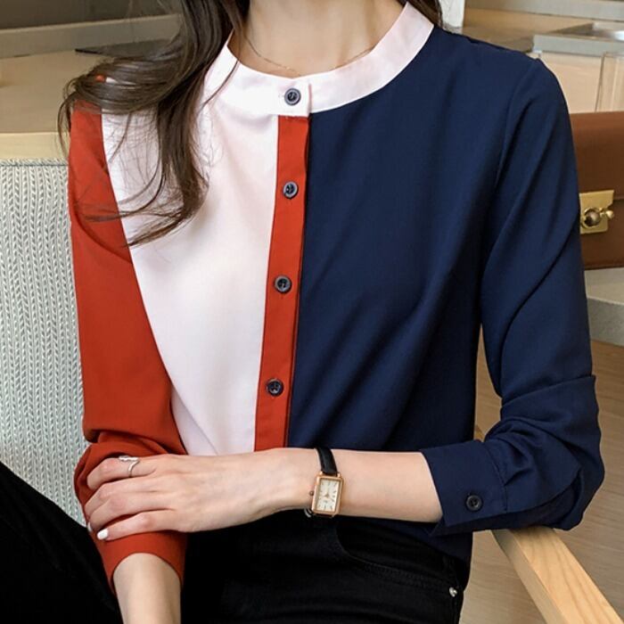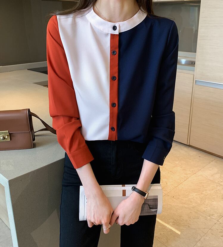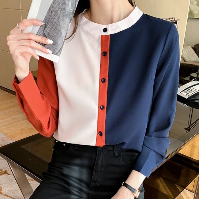 シャツ カットソー シフォンシャツ シフォン カラーシャツ レディース トップス 長袖 スタンドカラー ボタン スリム レトロ カジュアル きれいめ 上品 清楚 お洒落 普段使い 普段着 日常使い お出かけ デート 女子会 秋 S M L XL 2XL 20代 30代 大人 大人かっこいい コーデ コーディネート 韓国 ファッション オルチャン お取り寄せ 送料無料 hll-0113