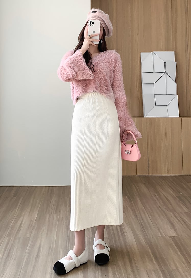 スカート ナロースカート ロングスカート ロング丈 ボトムス レディース タイトスカート スリット バックスリット 伸縮性 無地 ハイウエスト 上品 清楚 エレガント 大人女子 大人かっこいい 冬 ホワイト 白 ブルー 青 ブラック 黒 S M L XL 大人 お洒落 20代 30代 普段着 普段使い 日常使い お出かけ デート 女子会 休日 コーデ コーディネート 韓国 ファッション オルチャン お取り寄せ 送料無料 hll-0119