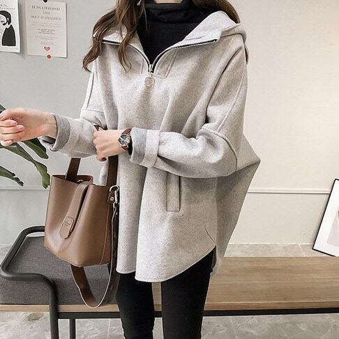 パーカー ウール ウールパーカー レディース トップス 長袖 フード付き プルオーバー ポケット ルーズ レトロ カジュアル きれいめ キュート 可愛い お洒落 普段使い 普段着 日常使い お出かけ デート 女子会 春 秋 イエロー 黄色 グレー 灰色 ブルー 青 XL 2XL 3XL 10代 20代 30代 大人 大人かっこいい コーデ コーディネート 韓国 ファッション オルチャン お取り寄せ 送料無料 hll-0124