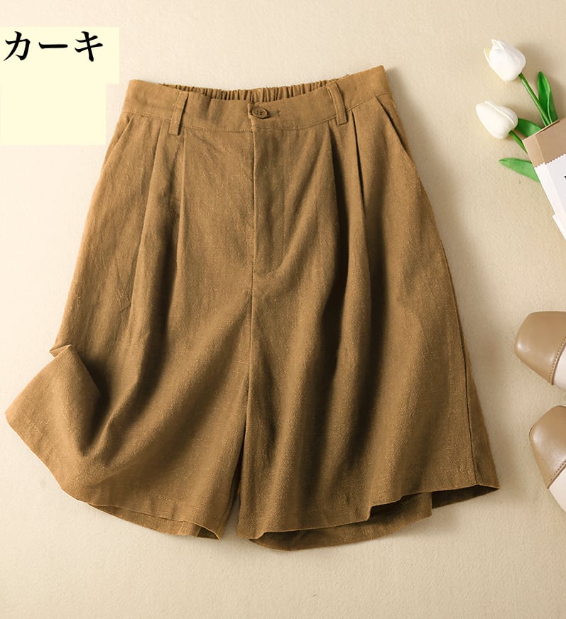 パンツ ハーフパンツ ワイドレッグパンツ ボトムス レディース コットン リネン 通気性 ポケット 無地 ハイウエスト 楽ちん きれいめ 大人女子 大人かっこいい 夏 ホワイト 白 グリーン 緑 カーキ ブラック 黒 M L XL 2XL 3XL ラージサイズ 大人 お洒落 可愛い 10代 20代 30代 普段着 普段使い 日常使い お出かけ デート 女子会 休日 コーデ コーディネート 韓国 ファッション オルチャン お取り寄せ 送料無料 hll-0129