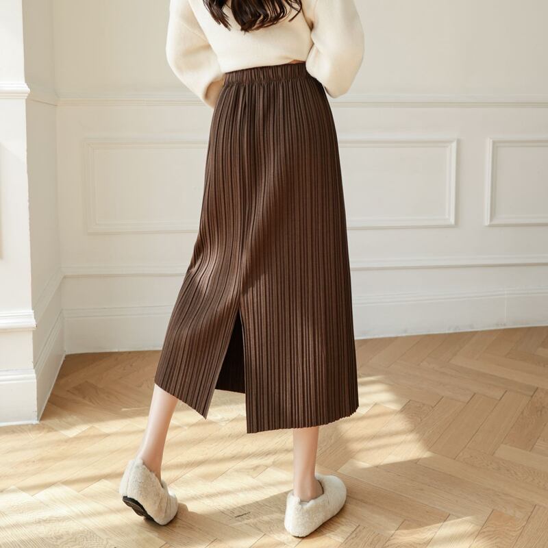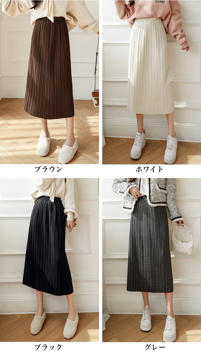 スカート プリーツスカート プリーツ ミドル丈 ボトムス レディース 伸縮性 スリット 無地 ハイウエスト 上品 清楚 エレガント 大人女子 大人かっこいい 春 秋 ホワイト 白 ブラウン 茶色 グレー 灰色 ブラック 黒 S M L XL 大人 お洒落 20代 30代 普段着 普段使い 日常使い お出かけ デート 女子会 休日 コーデ コーディネート 韓国 ファッション オルチャン お取り寄せ 送料無料 hll-0131