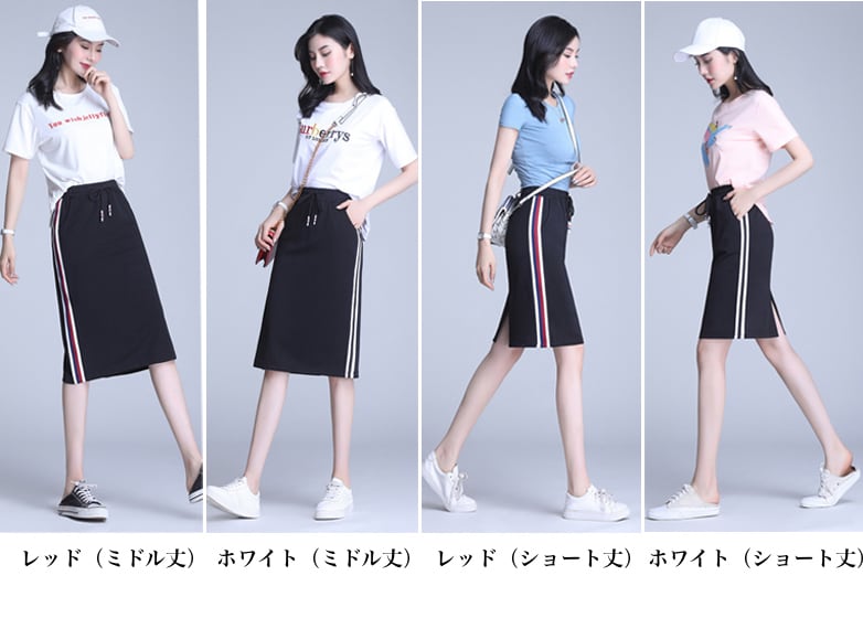 スカート スポーツスカート ストレートスカート ミドル丈 ショート丈 ボトムス レディース 伸縮性 スリット ハイウエスト ストライプ シンプル スポーティー カジュアル 大人女子 大人かっこいい 秋 レッド 赤 ホワイト 白 ブラック 黒 S M L XL 2XL 3XL ラージサイズ 大人 10代 20代 30代 普段着 普段使い 日常使い お出かけ スポーツ 運動 休日 コーデ コーディネート 韓国 ファッション オルチャン お取り寄せ 送料無料 hll-0135