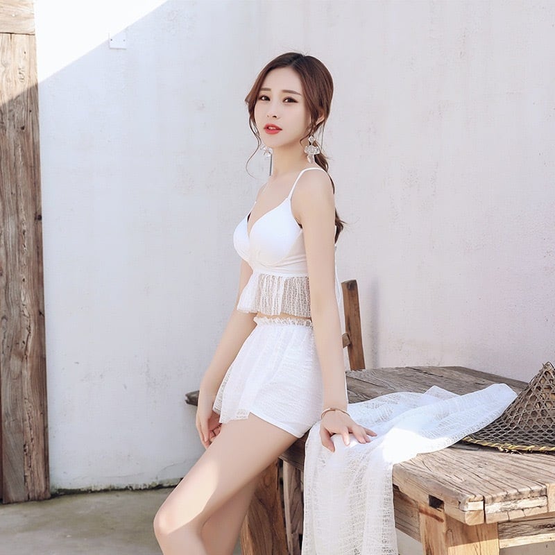 ビキニ水着 水着 ビキニ フリル パレオ 3点セット フリル 夏 セクシー ビーチ 海 プール リゾート 女性 女子 可愛い かわいい おすすめ 人気 体形カバー 華奢見せ インスタ映え ホワイト 白 ピンク グリーン 緑 ベージュ グレー 灰色 ブラック 黒 M L XL 大人 コーデ コーディネート 韓国 ファッション オルチャンお取り寄せ 送料無料 hll-0150