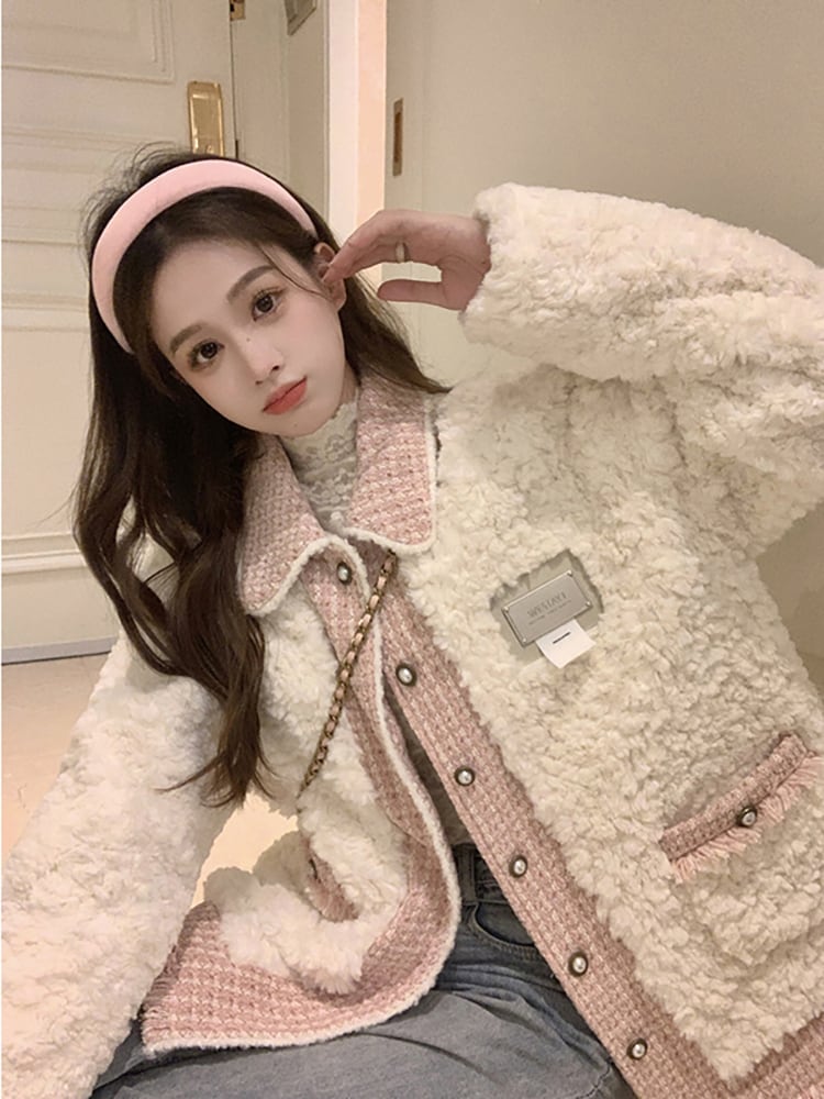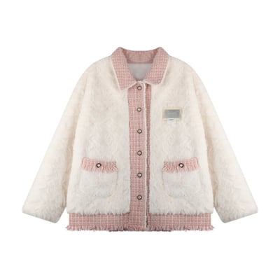 ジャケット アウター レディース ブルゾン 長袖 ボタン ポロ襟 白 ふわふわ モコモコ フェミニン ガーリー オーバーサイズ オーバーシルエット 体形カバー ゆる かわいい 可愛い 通勤 通学 学生 お出かけ デート 秋 冬 10代 20代 大人 コーデ コーディネート 韓国 ファッション オルチャン お取り寄せ 送料無料 hll-0563