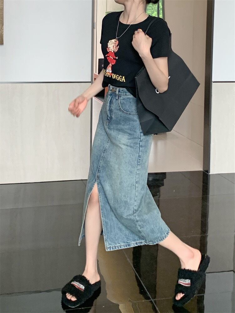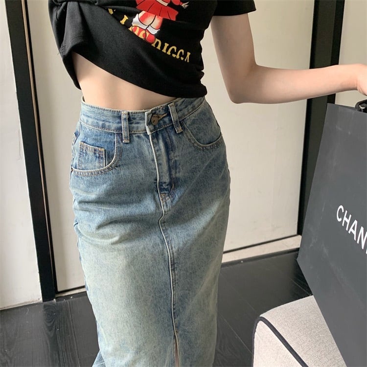 デニムスカート デニム ロングスカート ロング丈 ボトムス レディース スリット 無地 ハイウエスト きれいめ 脚長 大人女子 大人かっこいい 夏 ブルー 青 XS S M L XL 大人 お洒落 可愛い 10代 20代 30代 普段着 普段使い 日常使い お出かけ デート 女子会 休日 コーデ コーディネート 韓国 ファッション オルチャン お取り寄せ 送料無料 hll-0173
