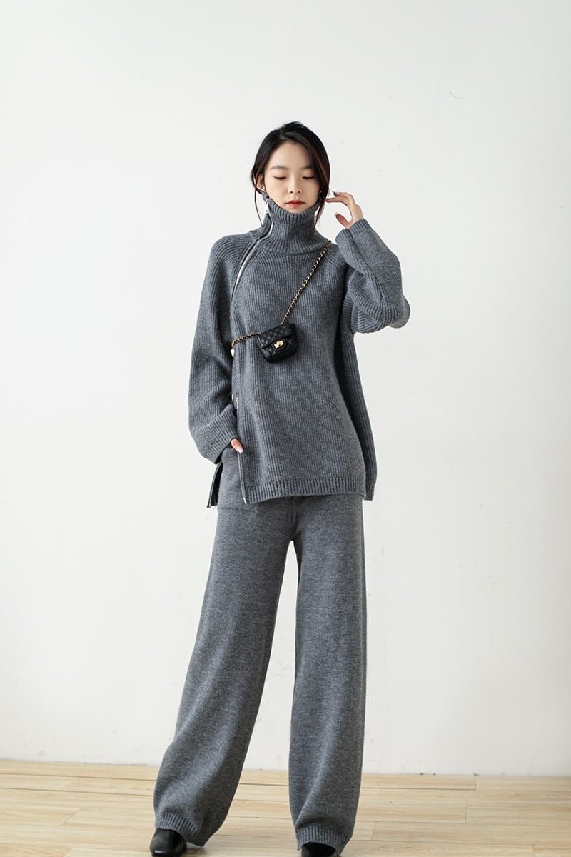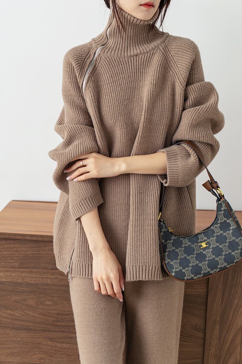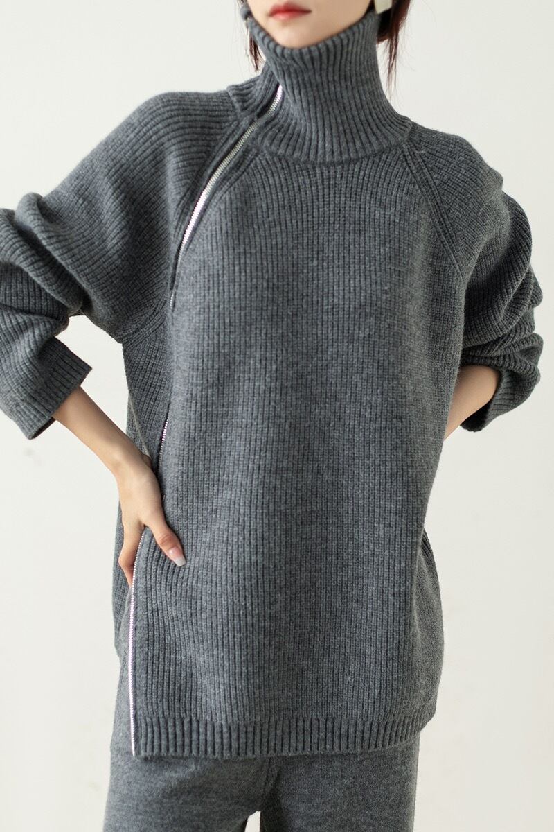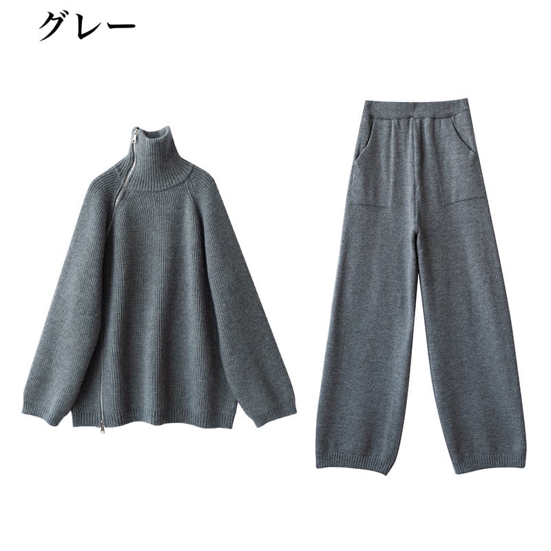 セットアップ レディース セーター ニット ニットセーター パンツ ニットパンツ 2点セット 上下セット 長袖 タートルネック ジッパー ファスナー カジュアル ルーズ 大人女子 大人かっこいい お洒落 エレガント 秋 冬 ホワイト 白 ピンク ブラウン 茶色 グレー 灰色 ブラック 黒 20代 30代 お出かけ 普段使い 日常使い 普段着 女子会 デート 休日 大人 コーデ コーディネート 韓国 ファッション オルチャン お取り寄せ 送料無料 hll-0187