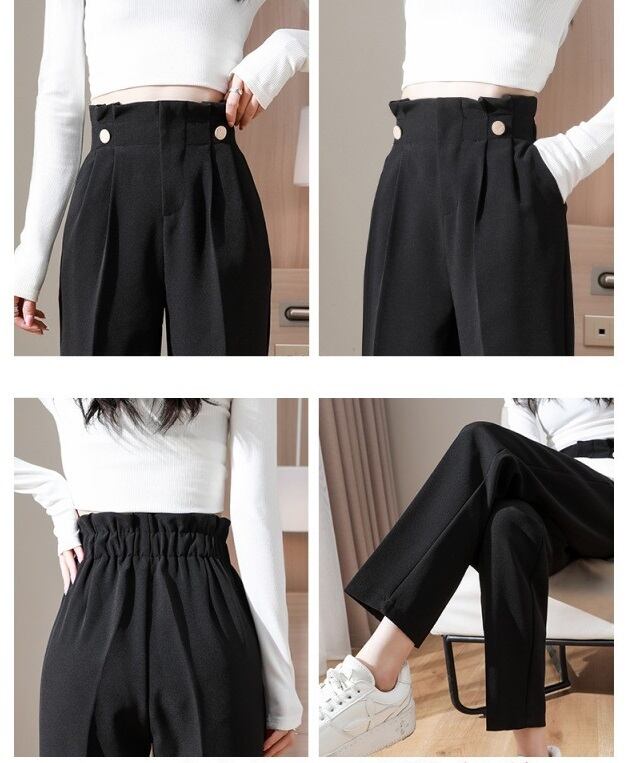 スーツパンツ ハーレムパンツ ストレートパンツ 九分丈 ボトムス ポケット ハイウエスト 無地 シンプル セクシー きれいめ 大人女子 大人かっこいい 秋 冬 ブラック 黒 S M L XL 2XL 3XL 4XL 5XL ラージサイズ 大人 お洒落 可愛い 20代 30代 OL 通勤 オフィス ビジネス お呼ばれ お出かけ デート 女子会 コーデ コーディネート 韓国 ファッション オルチャン お取り寄せ 送料無料 hll-0192