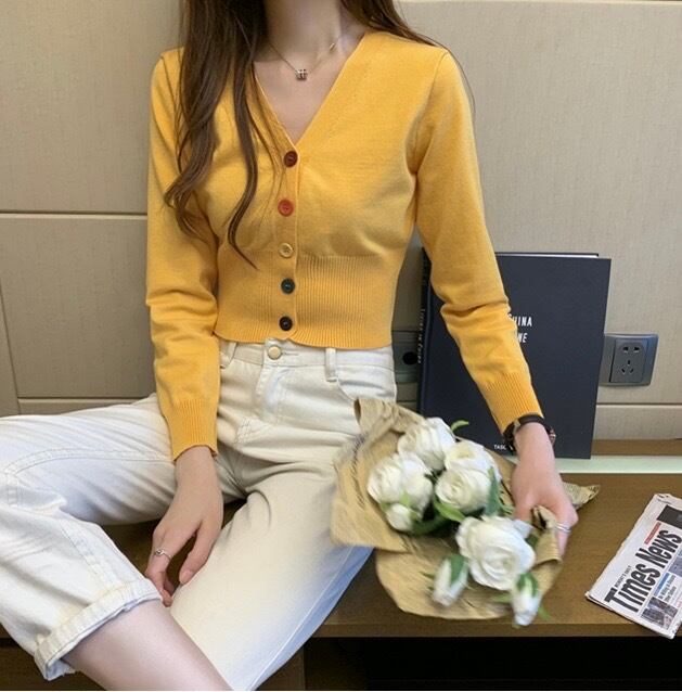カーディガン ニット ニットカーディガン レディース トップス 長袖 ボタン 前開き Vネック 無地 スリム カジュアル きれいめ お洒落 日常使い 普段着 普段使い デート お出かけ 学生 通学 OL 通勤 秋 ホワイト 白 イエロー 黄色 ピンク ブラック 黒 ワンサイズ 10代 20代 30代 大人 コーデ コーディネート 韓国 ファッション オルチャン お取り寄せ 送料無料 hll-0199