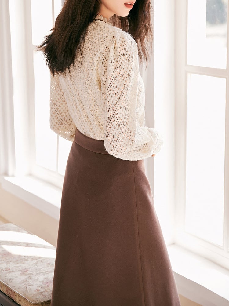 ブラウス レディース トップス シャツ レース 長袖 スタンドカラー ボタン パール シック クラシカル 上品 エレガント 通勤 仕事 仕事用 仕事着 20代 30代 40代 春 秋 きれいめ 大人 コーデ コーディネート 韓国 ファッション オルチャン お取り寄せ 送料無料 hll-0589