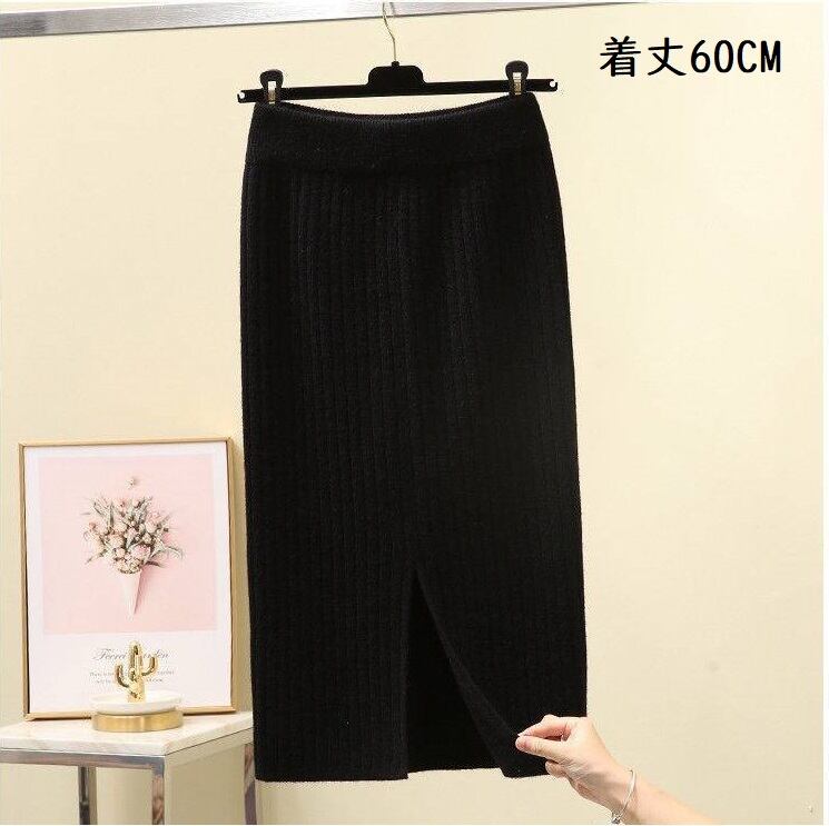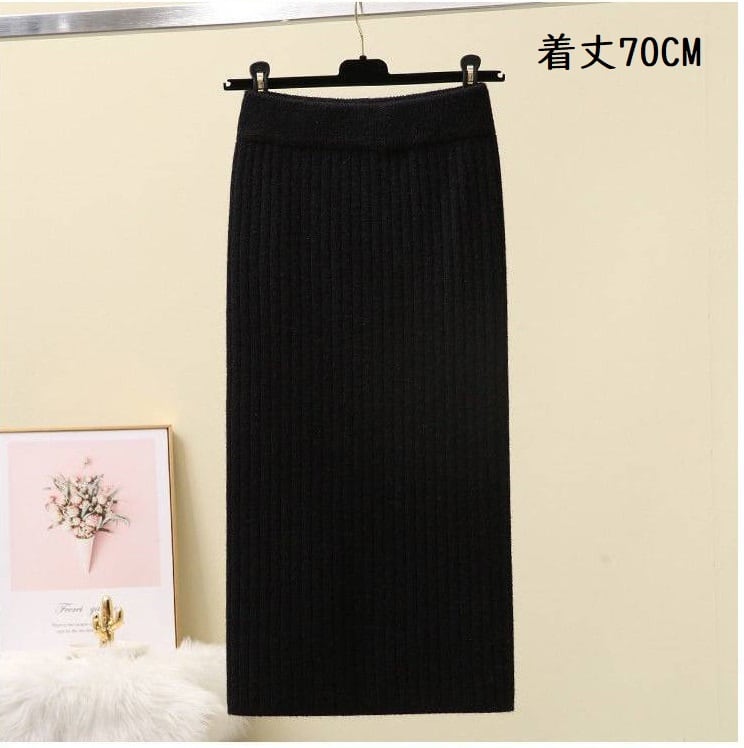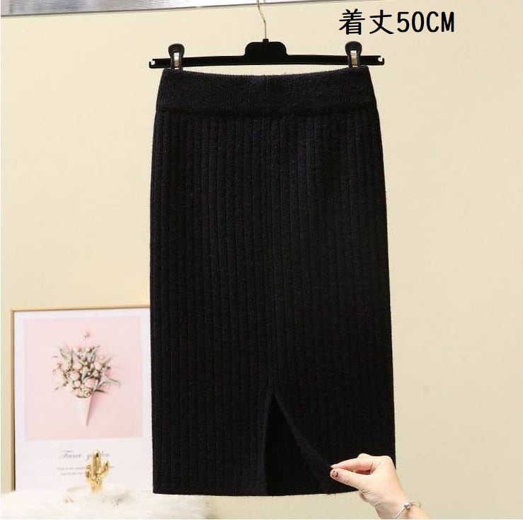 ニットスカート レディース スカート ニット ひざ丈 ひざ下 ミドル丈 タイト 細身 リブ ウエストゴム スリット きれいめ 上品 通勤 学生 仕事 仕事用 仕事着 20代 30代 40代 50代 春 秋 冬 大人 コーデ コーディネート 韓国 ファッション オルチャン お取り寄せ 送料無料 hll-0598