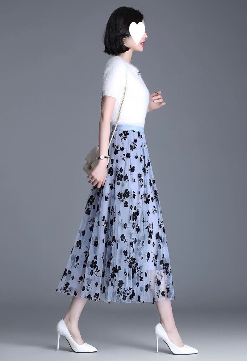スカート ロングスカート ガーゼスカート Aラインスカート メッシュスカート プリーツ メッシュ 花柄 ロング丈 ボトムス レディース 透け感 ハイウエスト ふわふわ セクシー きれいめ 大人女子 大人かっこいい 秋 冬 ブルー 青 ブラウン 茶色 ブラック 黒 M L XL 2XL 大人 お洒落 可愛い 20代 30代 お呼ばれ お出かけ デート 女子会 コーデ コーディネート 韓国 ファッション オルチャン お取り寄せ 送料無料 hll-0230