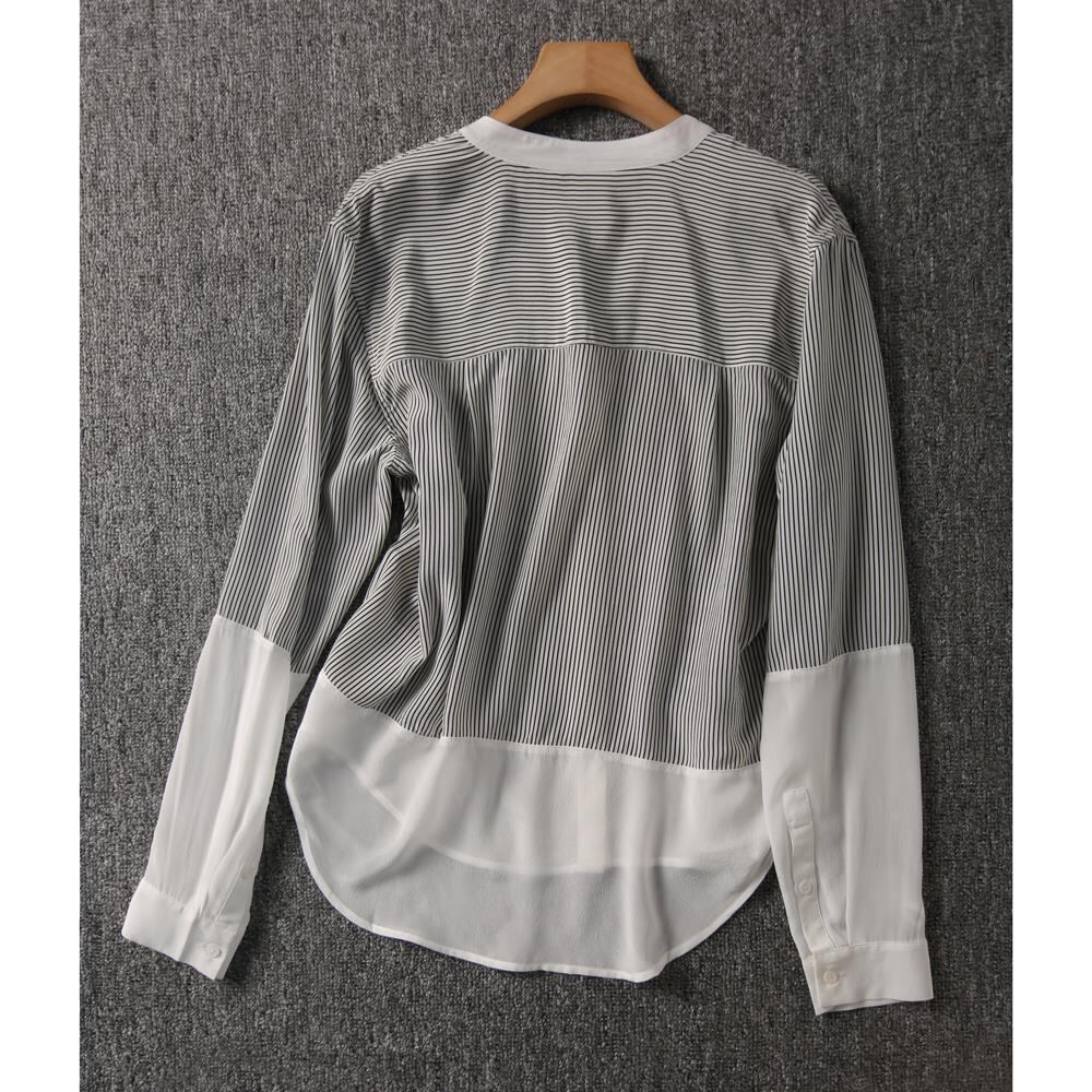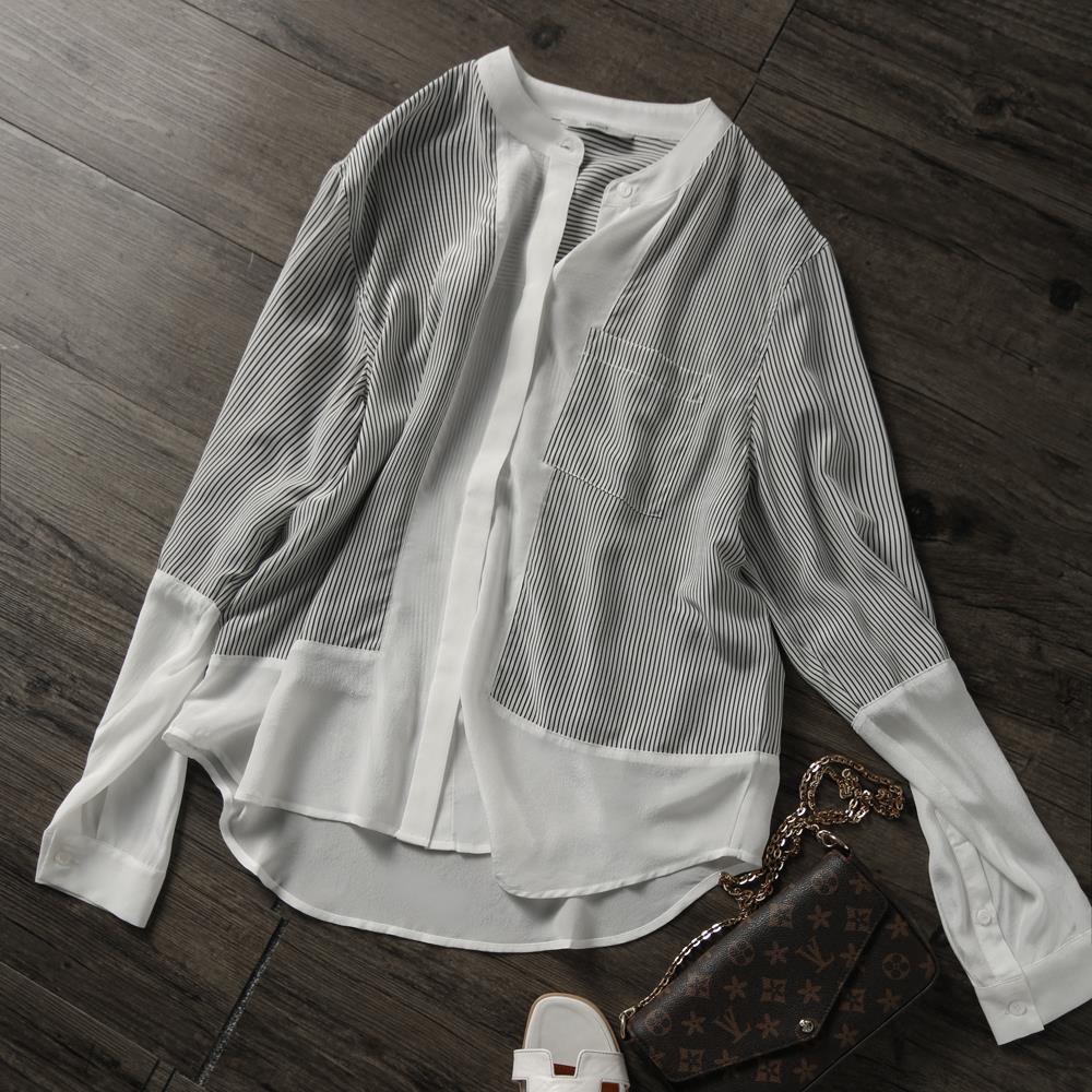 ストライプシャツ レディース トップス ストライプ シャツ ブラウス ハイカラー ツートンカラー 配色 黒 白 きれいめ 仕事 仕事用 仕事着 20代 30代 40代 春 夏 薄手 大人 コーデ コーディネート 韓国 ファッション オルチャン お取り寄せ 送料無料 hll-0617