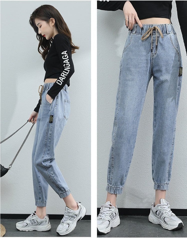 クロップドパンツ レディース ボトムス デニム パンツ ウエストゴム 九分丈 カジュアル シンプル 日常 デイリー お出かけ デート 通勤 通学 学生 10代 20代 30代 春 夏 大人 コーデ コーディネート 韓国 ファッション オルチャン お取り寄せ 送料無料 hll-0618