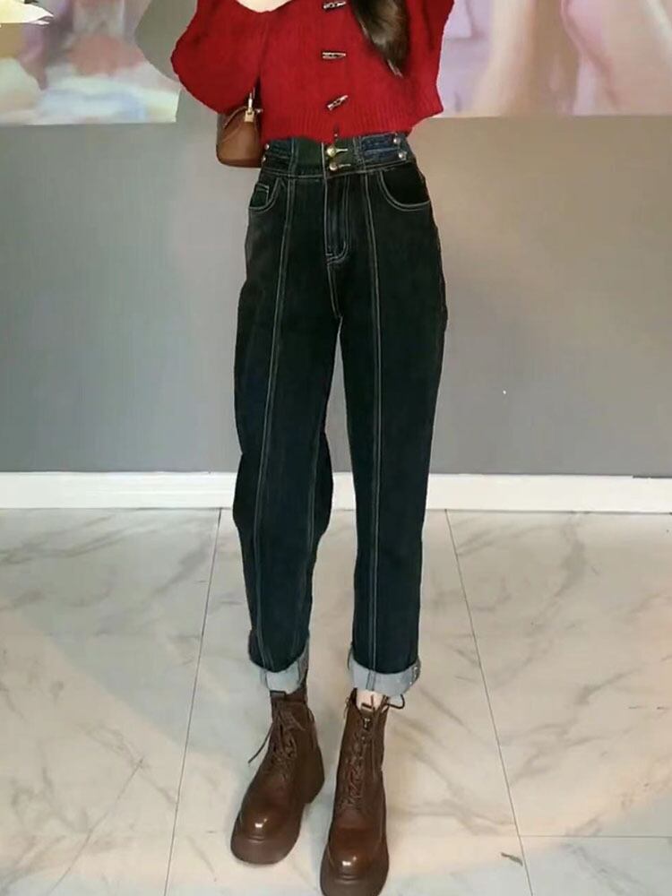 ハイウエストデニムパンツ レディース ボトムス パンツ デニム ジーンズ ジーパン ハイウエスト ストレート カジュアル シンプル 日常 デイリー お出かけ デート 通学 学生 10代 20代 30代 大人 コーデ コーディネート 韓国 ファッション オルチャン お取り寄せ 送料無料 hll-0621