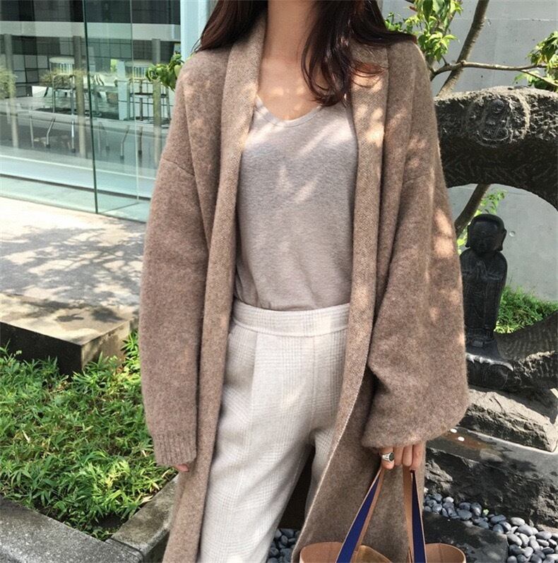 カーディガン ニット ニットカーディガン ロングカーディガン ロング丈 レディース トップス 長袖 前開き 無地 ルーズ カジュアル きれいめ お洒落 日常使い 普段着 普段使い デート お出かけ 女子会 OL 通勤 秋 冬 アプリコット ピンク ブラウン 茶色 ワンサイズ 20代 30代 大人 コーデ コーディネート 韓国 ファッション オルチャン お取り寄せ 送料無料 hll-0274