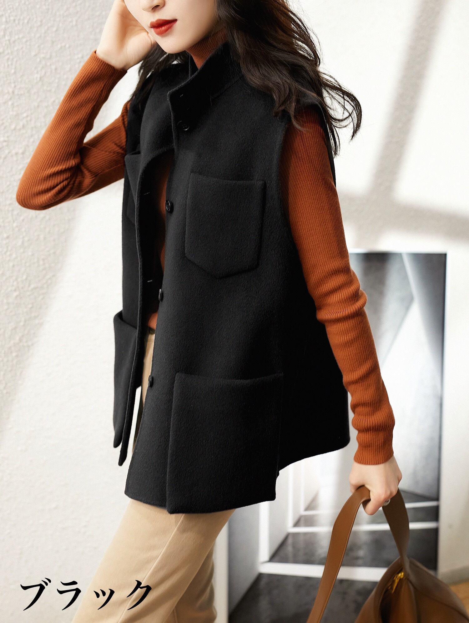 ベスト ジャケット ウール ウールベスト アウター レディース ノースリーブ 襟付き スタンドカラー ボタン 前開き ポケット 無地 ルーズ レトロ きれいめ お洒落 お出かけ OL 通勤 普段使い 普段着 日常使い デート 女子会 秋 ブラウン 茶色 ブラック 黒 S M L XL 2XL 20代 30代 大人 大人かっこいい コーデ コーディネート 韓国 ファッション オルチャン お取り寄せ 送料無料 hll-0279